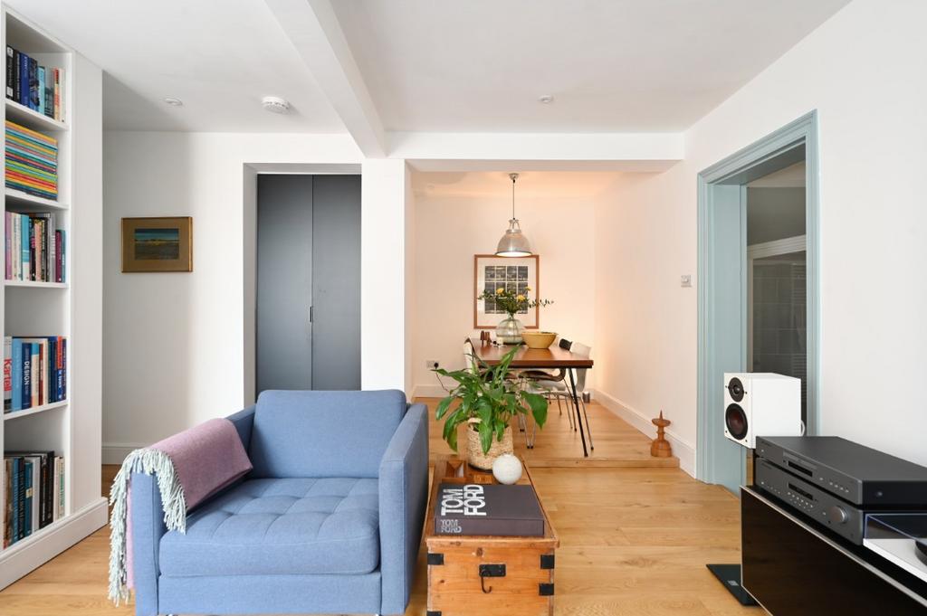 This beautifully renovated two-bedroom flat is formed from a part of the ground floor of Decimus Burtons’ original home in St Leonards. The flat’s current owners come from design and creative professional backgrounds and this visual awareness is evident in the high presentation standards of the finishes and design. Current residents of The Lodge come from a range of backdrops including artists, publishers, craftspeople and designers but they all share a commitment to continuing to improve the building infrastructure and the quality of life for all living within this wonderful building. The building is managed by an external management company with input from the residents.