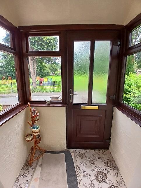 PORCH 5’ 0” (1.52m) x 3’ 7” (1.08m) having a uPVC double glazed window, a coach lamp style light fitting and a double glazed door opening into the