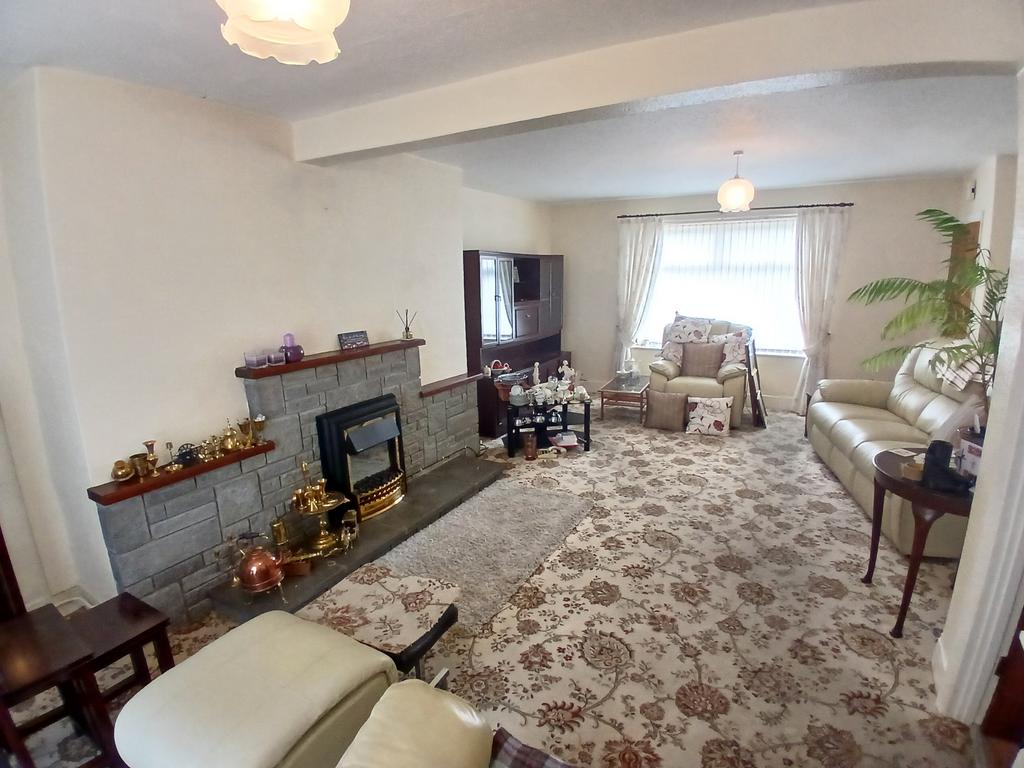 LOUNGE 23’ 6” (7.16m) x 15’ 6” (4.70m) (max) having a ‘cast stone’ fire surround with a raised hearth and an inset electric fire, two single radiators with deflector shelves, a wall mounted cupboard housing the consumer unit, a double glazed window, double glazed sliding patio doors opening to a private paved seating area and a door opening into the