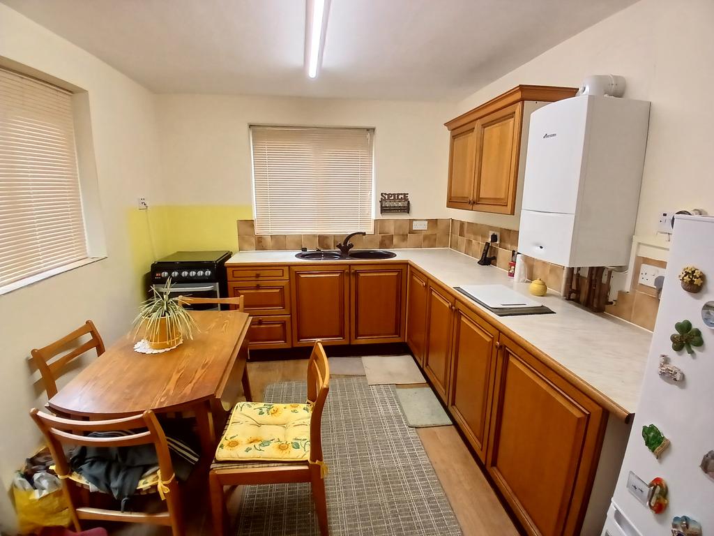 BREAKFAST KITCHEN 11’ 0” (3.38m) x 9’ 0” (2.75m) with a range of matching base and wall cupboard units having marble pattern heat resistant worktops incorporating an inset single drainer circular sink with mixer taps. Wood effect vinyl flooring, a recess for a cooker, tiled splash backs to the worktops, a Worcester Greenstar 25i ErP wall mounted mains gas fired condensing ‘combi’ boiler with an integral digital programmer, two uPVC double glazed windows, a strip light fitting, a small access hatch to the roof space and a uPVC double glazed external door providing independent side access.