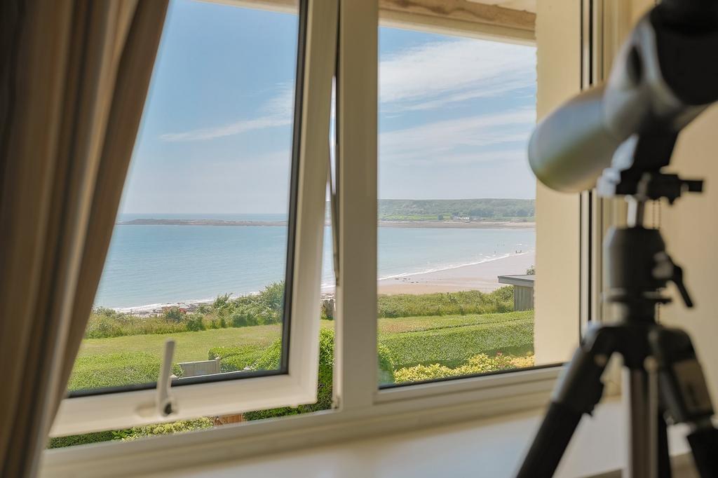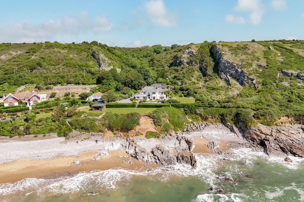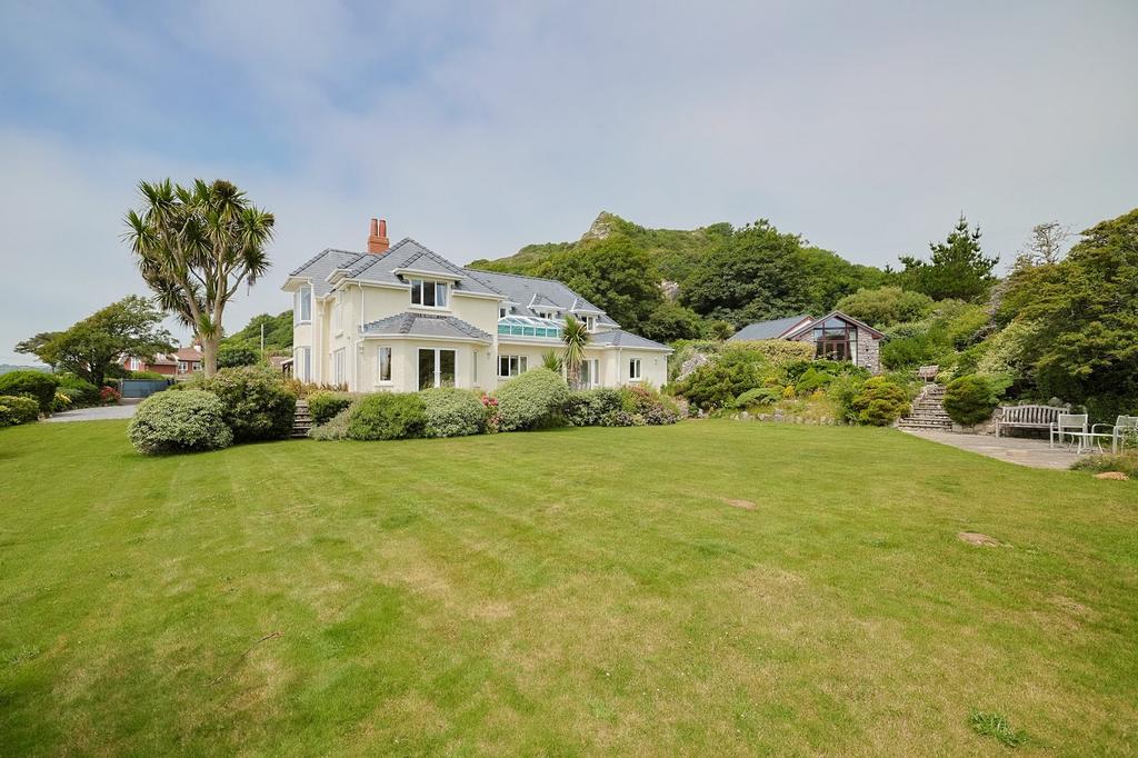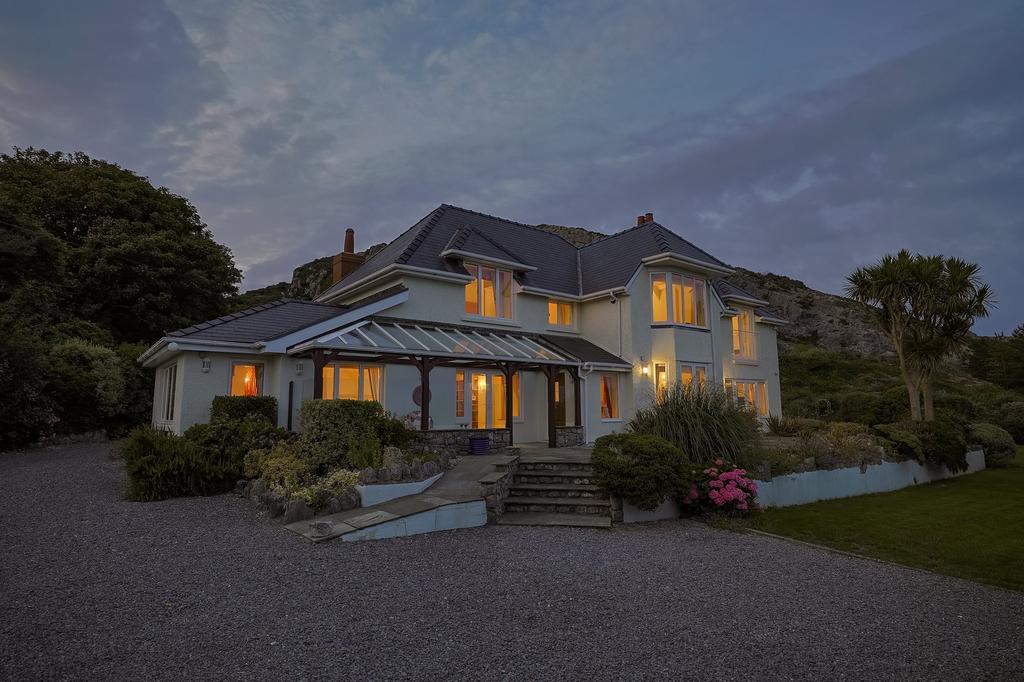 Outside - The grounds at Craig Y Don are nothing short of enchanting a private coastal sanctuary set within approximately 1.81 acres of exquisitely landscaped gardens. Every element has been thoughtfully crafted to complement the natural beauty of its setting. Meandering stone-chip pathways lead you through vibrant flower beds, mature trees, and lush lawns, while the sound of the ocean and birdsong provides a constant, calming backdrop. Discover hidden corners to unwind, from the bespoke firepit with seating to the striking rock feature, artfully designed to mimic a flowing river. As evening falls, the dramatically lit cliff face transforms the garden into a magical space. And at the heart of it all lies the jewel in the crown a generous front lawn with private stone steps leading directly to Horton Bay, offering unparalleled access to the beach for those who live for the sea, sand, and coastal air.