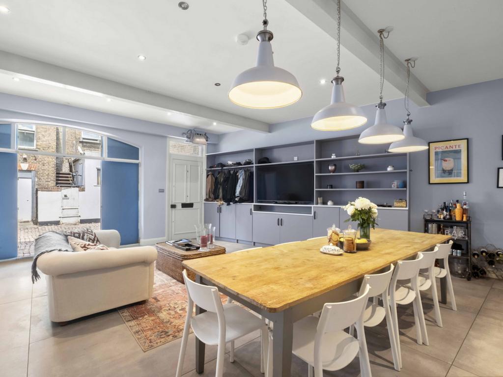 The ground floor opens with an inviting kitchen and dining area, featuring large bi-fold doors that spill directly out onto the cobbled mews - ideal for entertaining or simply letting the outside in.