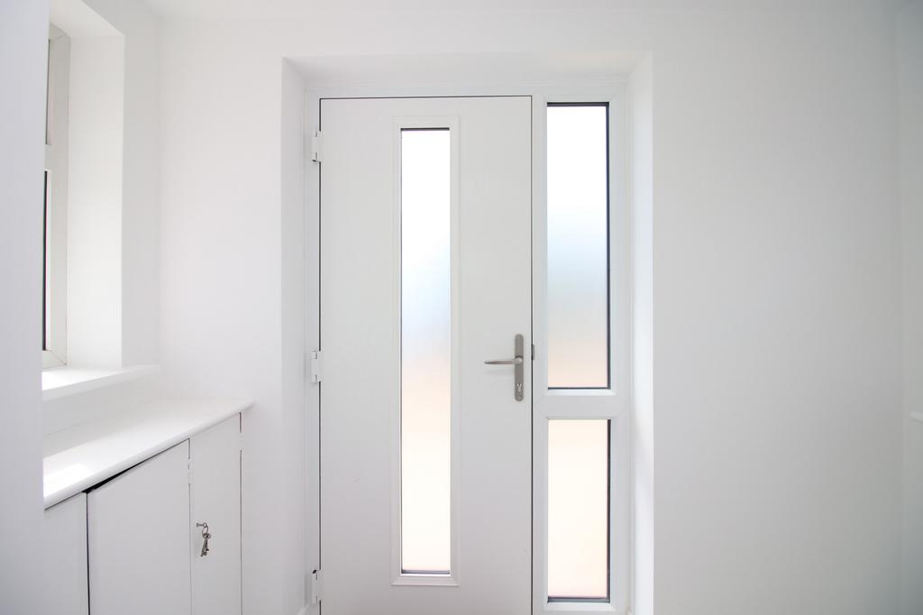 Spacious entrance vestibule with composite external door, windows to each side with glazed double doors through to the living room. Attractive flooring that flows through the ground floor apart form the shower room.