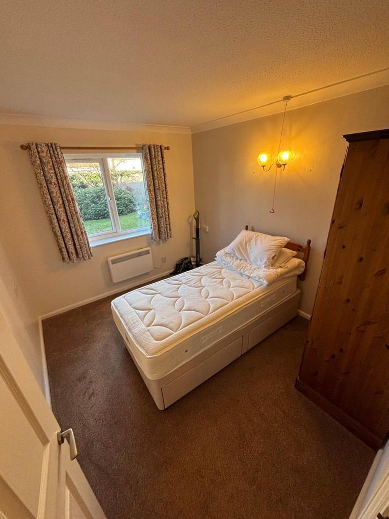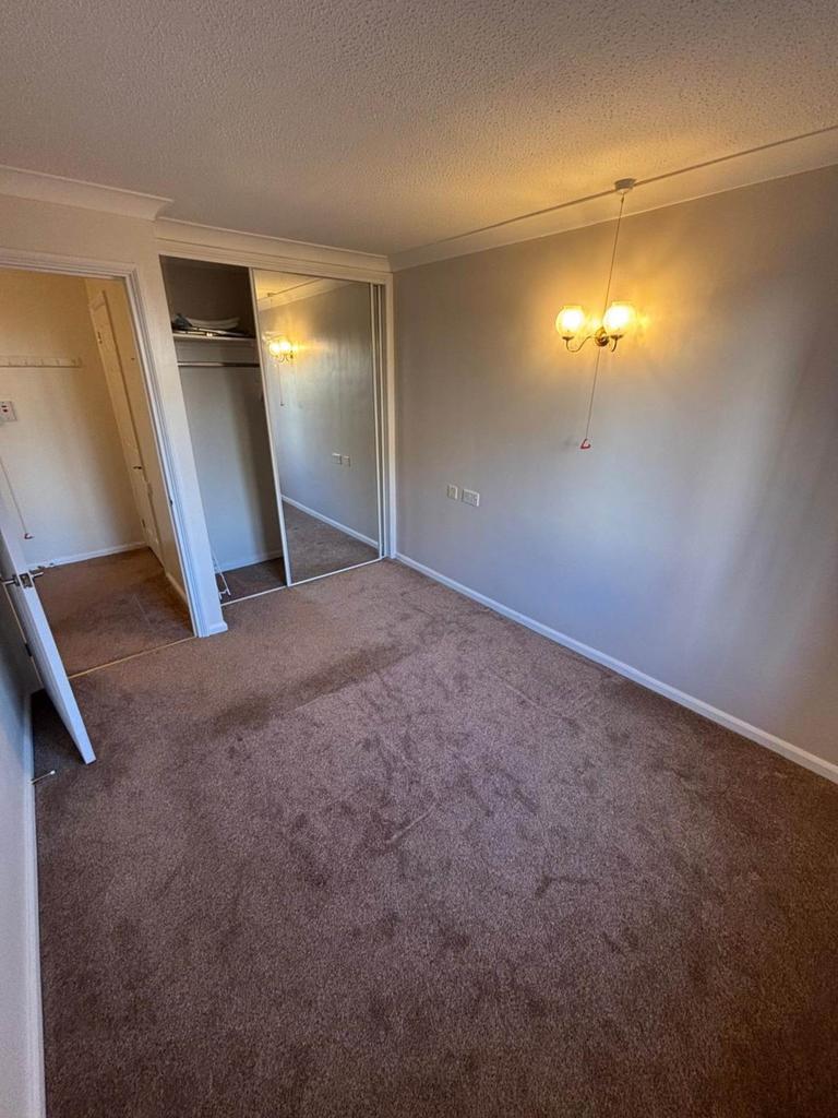 BEDROOM ONE having built-in wardrobes with mirrored front, electric slimline heater.
