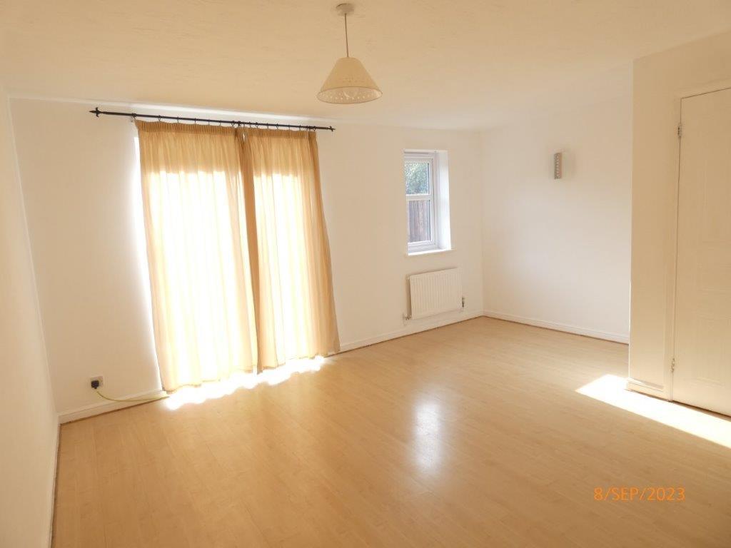 Three bed end terrace. Hall. Cloaks WC. Fitted kitchen. lounge diner with patio doors to garden. Three bedrooms. Bathroom with shower. Enclosed rear garden. Two parking spaces. Gas CH. Good order. EPC=C. Council tax band B. Deposit £1384.62