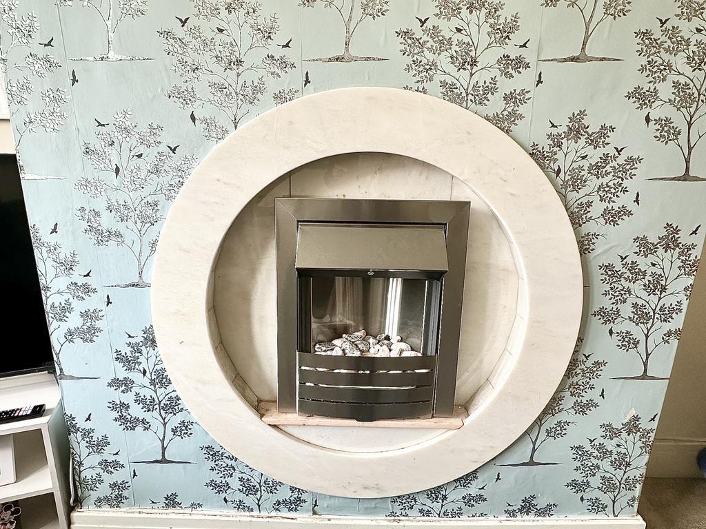 Ceiling light point, ceiling rose, coving, double glazed bay window, feature fireplace and a radiator.