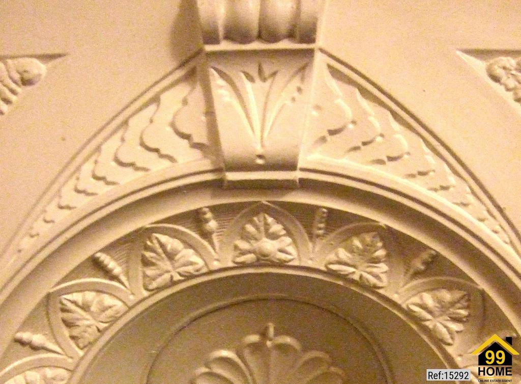 The dining room is very imposing with both ceiling and walls decorated with fine plasterwork. There is a large bay window looking towards the front of the house and a second large window overlooks a courtyard to the north side.