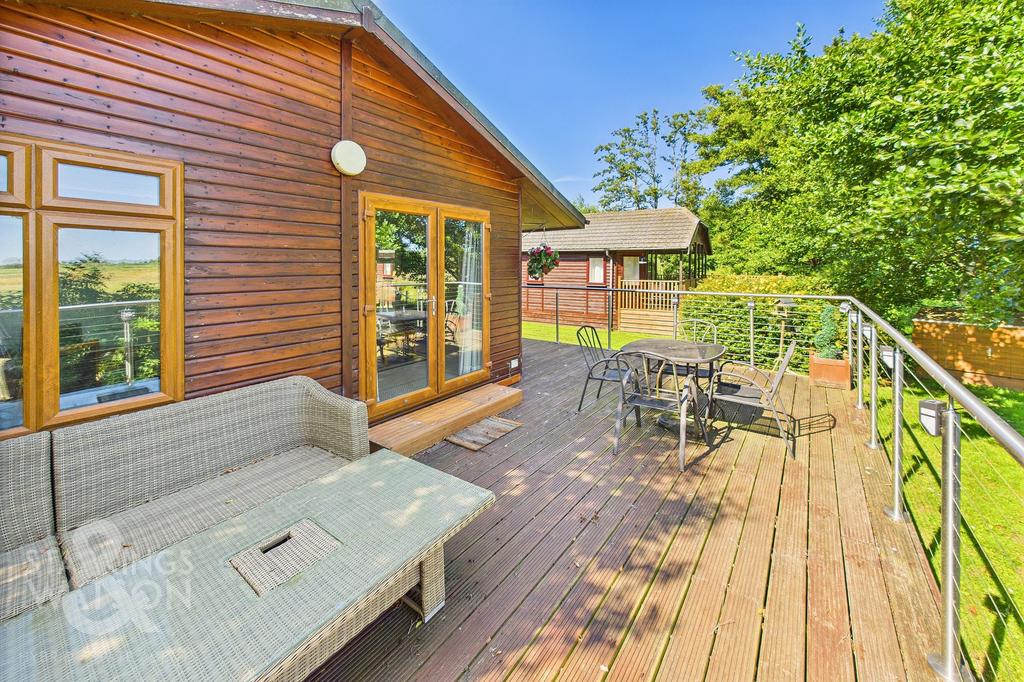 Accessed via French doors in the sitting room onto a stunning decked terrace with metal railings enclosing. The terrace offers amazing far reaching views across the marshland and Waveney Valley. The enclosed decked space is the perfect place for a table and chairs creating an idyllic outside entertaining space.