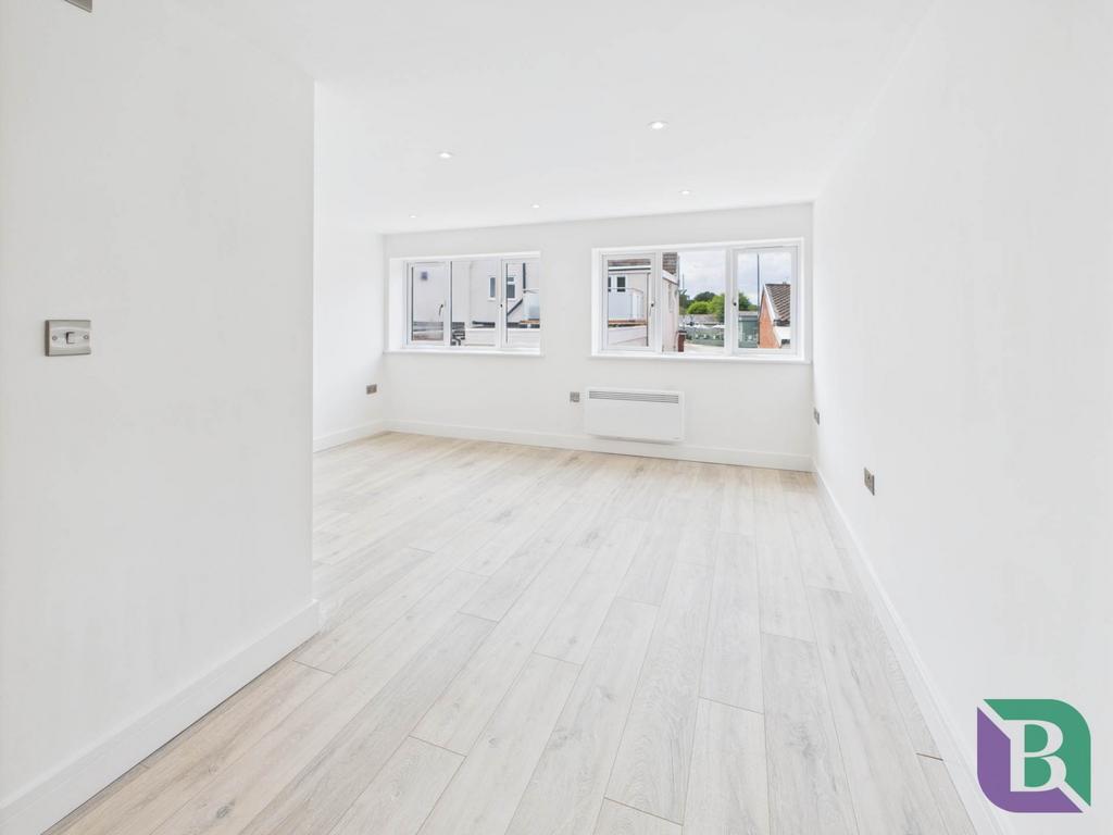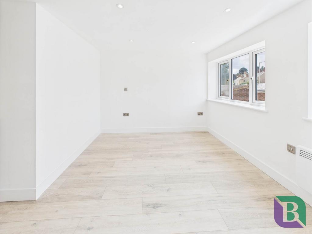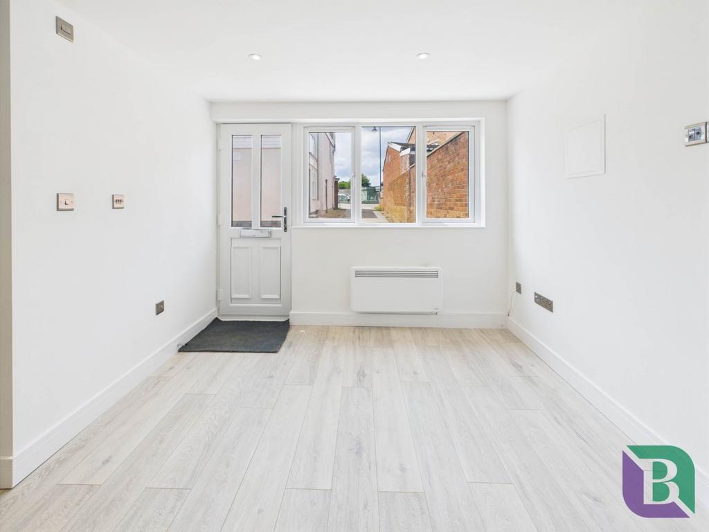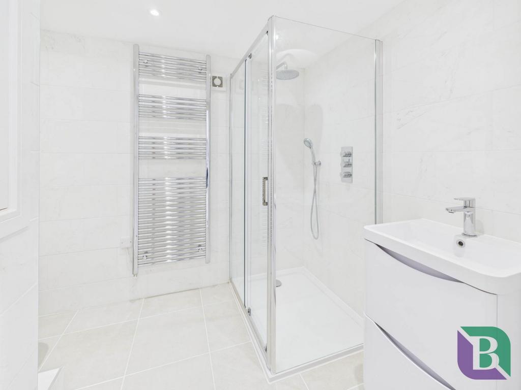 Upstairs, the first-floor landing leads to a generously sized L-shaped bedroom, enjoying plenty of natural light from two front-facing windows. The bedroom also benefits from access to a stylish en-suite shower room.
