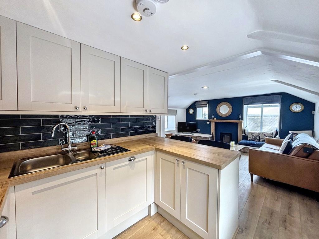 This is a lovely space, boasting a pleasant triple aspect, which makes the rooms feel light and airy. There are slight sea views to the side and the open-plan kitchen has been recently upgraded.