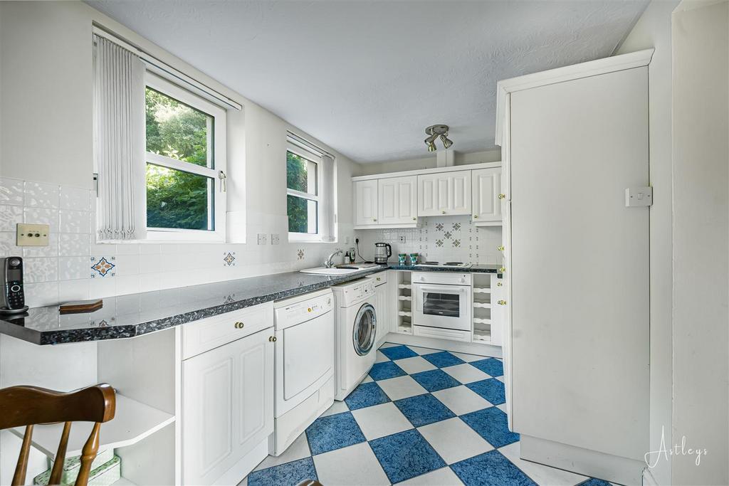 Kitchen - 2.341 x 4.339 (7'8" x 14'2" ) - The kitchen is fitted with a range of base and wall units. Running work surface incorporating a one and a half bowl sink and drainer unit. Four ring gas hob with oven and grill under. Extractor hood over. Integral fridge. Integral freezer. Plumbing for washing machine. Space for tumble dryer. Tiled floor.