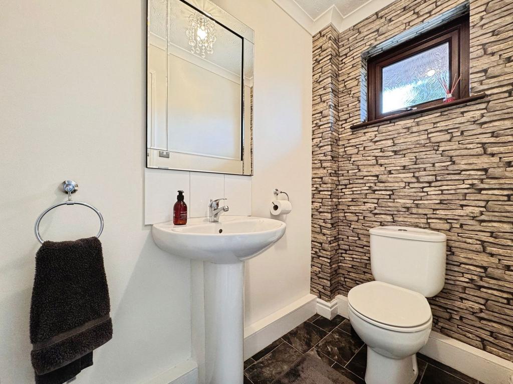 Step inside to be greeted by a spacious hallway, complete with a convenient cloakroom. To the left of the hallway you will find the cosy yet roomy lounge, made even more inviting with a multi fuel stove that promises to warm those chilly evenings. The heart of this lovely home is the dining kitchen. Natural light floods this area, showcasing sleek units that capture and reflect light beautifully. The kitchen is dual aspect with patio doors that open up to the mature garden, perfect for al fresco living. Off the kitchen you will find the utility room which has doors to the garage and garden.