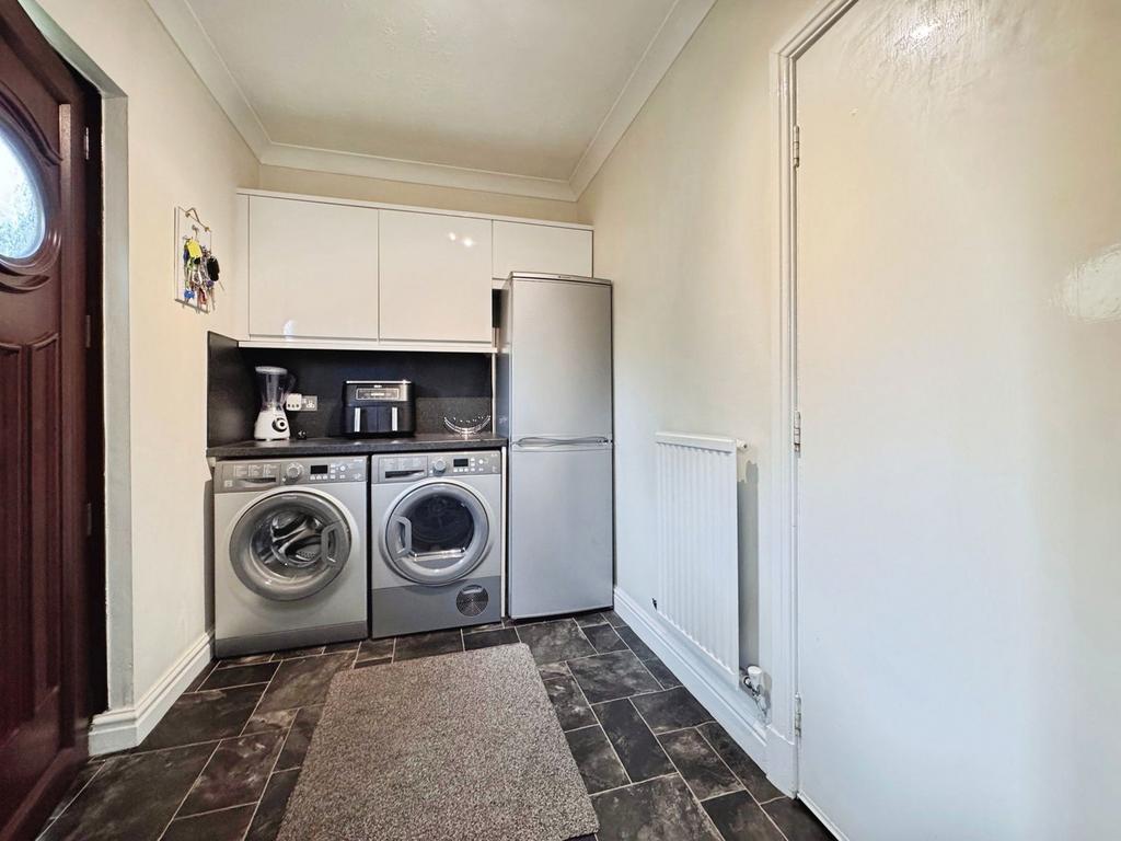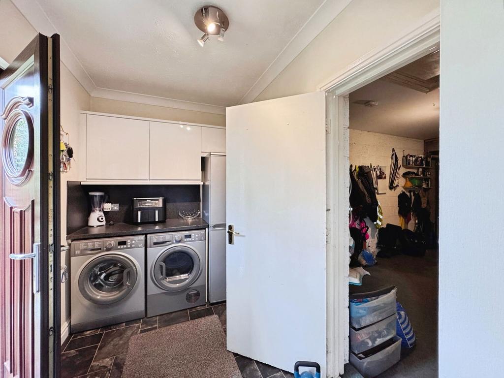 - Conveniently placed utility room with door to the garage and garden