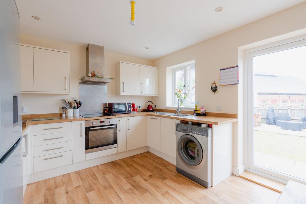 Upstairs there is a double bedroom to the front of the property with fitted wardrobes, the master bedroom to the rear also has fitted wardrobes and there is a further single. The family bathroom has a white suite bath with shower over and glass screen, WC and sink. There is uPVC double glazing throughout and air-source heating giving underfloor heating to the ground floor and radiators to the first floor.