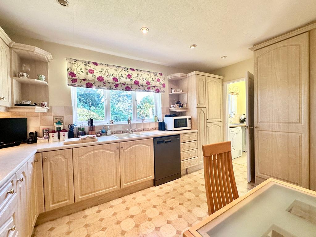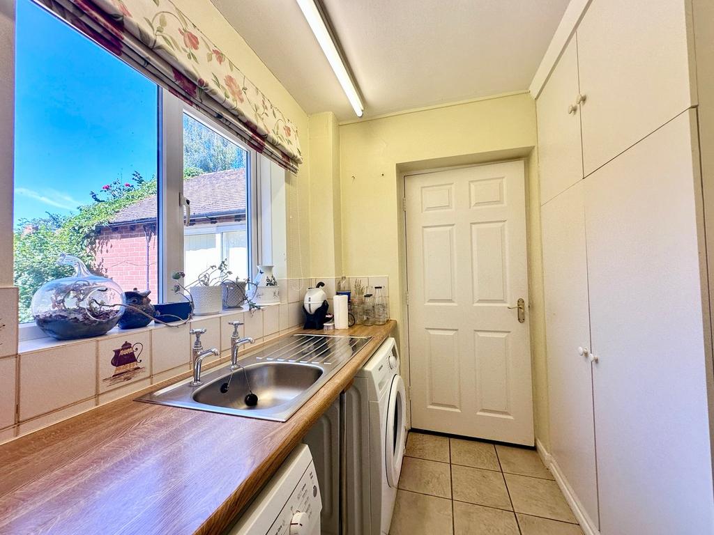 5' 10" x 6' 5" (1.78m x 1.96m) with window to rear, range of laminate worktops with cupboard under, inset stainless steel sink with drainer, space for washing machine and tumble dryer, Ideal Mexico central heating boiler, tiled splashbacks, radiator. Door to Office area.