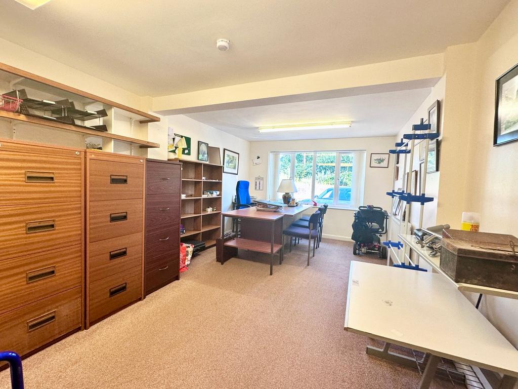 11' 2" x 16' 10" (3.40m x 5.13m) with up and over door, power and light connected. Personal door to Office Room.
