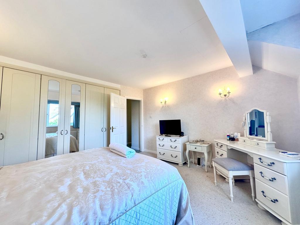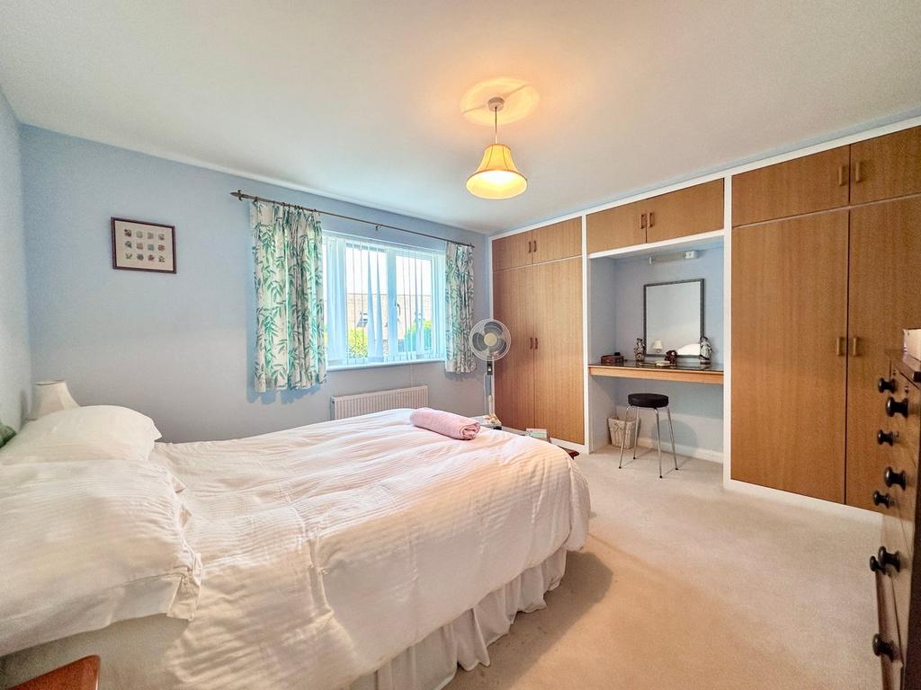 13' 11" x 12' 0" (4.24m x 3.66m) with window to front, radiator, power points, range of fitted furniture to include His and Hers wardrobe and dressing table.