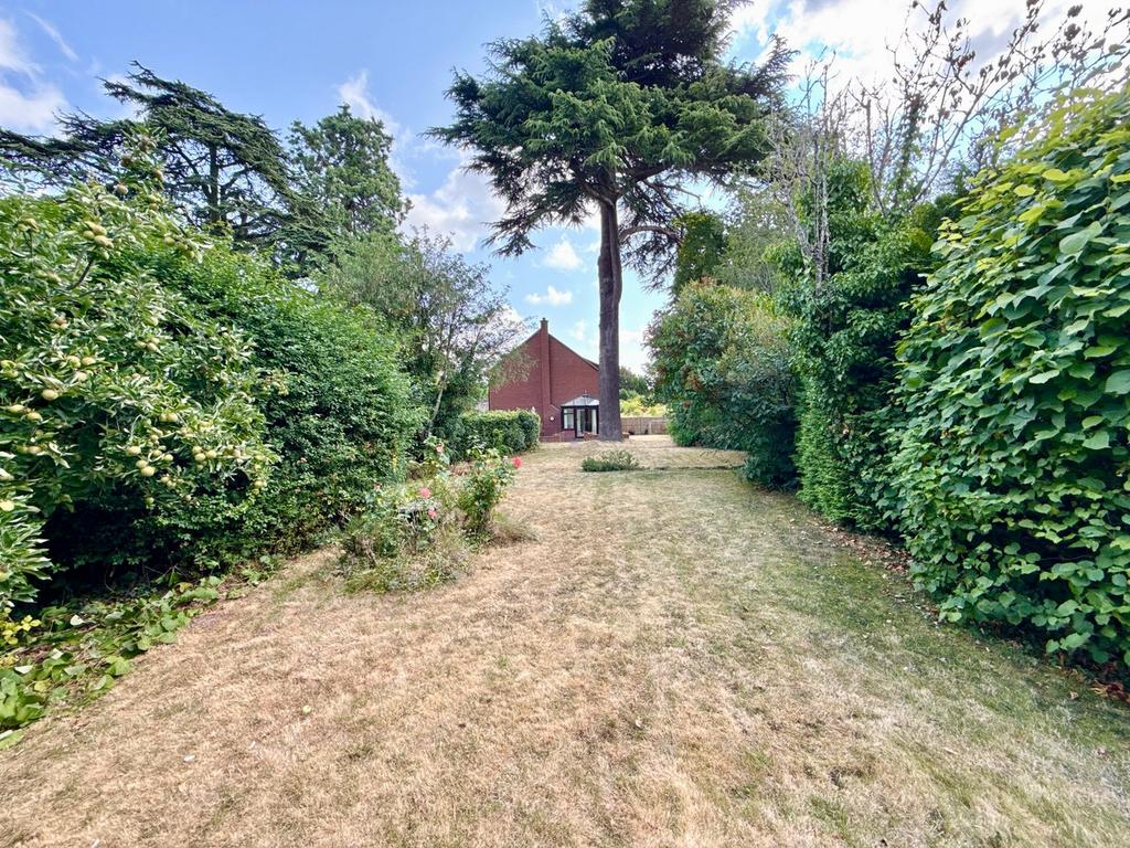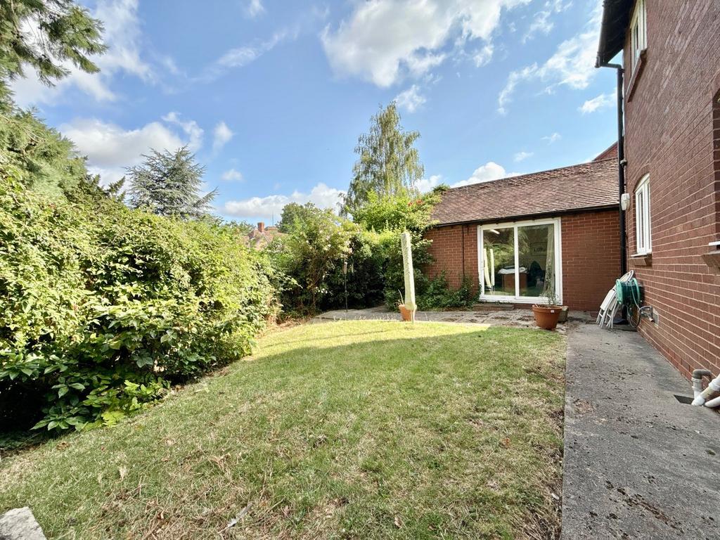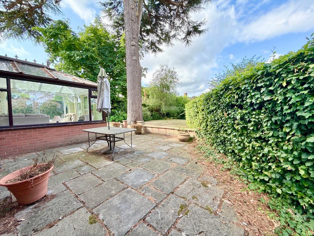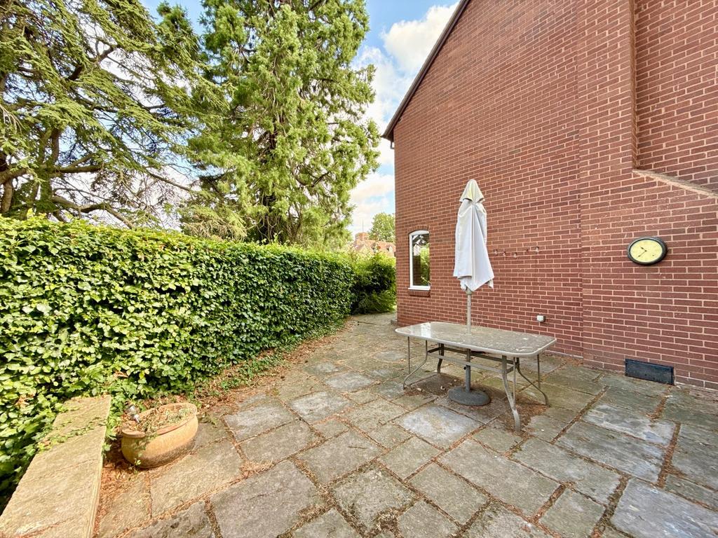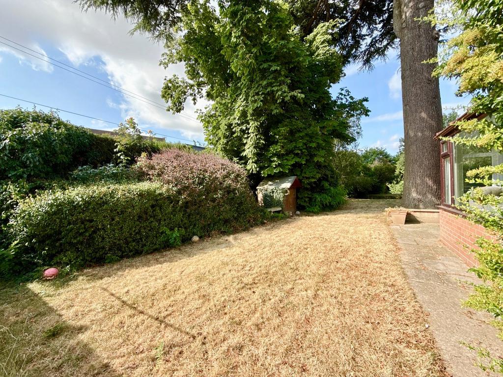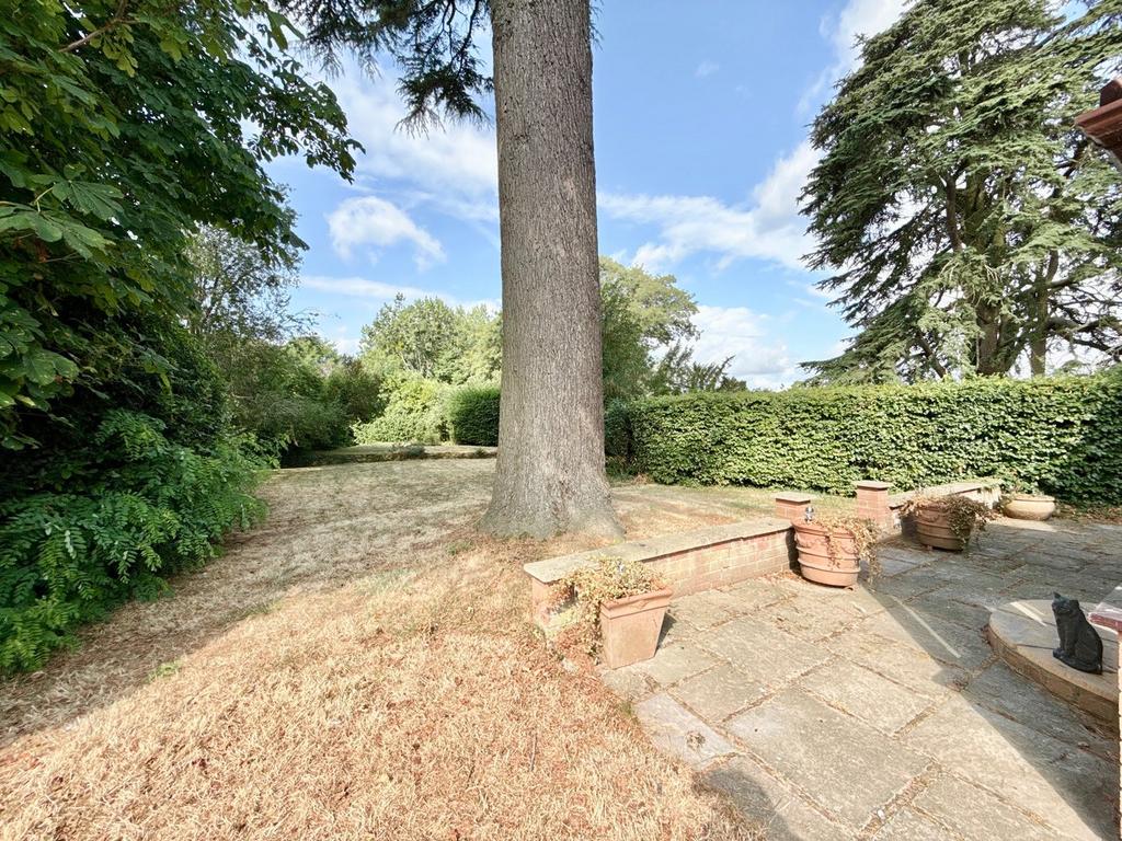 Accessed via a wooden side gate, the garden wraps around three sides of the property and comprises a patio seating area with adjacent lawn, bound by mature hedging, to the rear of the property is a further patio set under a recessed archway and large Garden Shed. The garden offers considerable privacy.