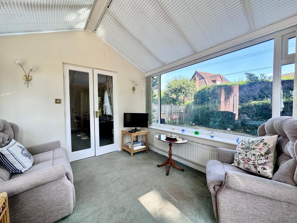 9' 0" x 11' 0" (2.74m x 3.35m) with double doors opening onto the garden, radiator, power points, wall lights.