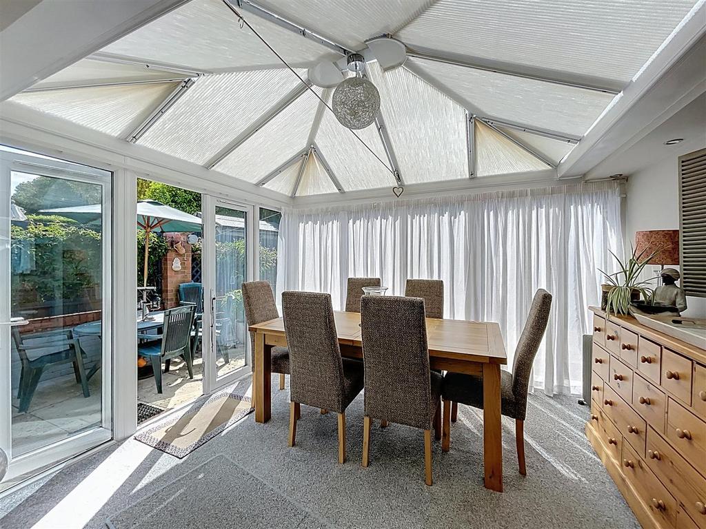 Conservatory - 3.23m x 3.54m (10'7" x 11'7") - Double glazed full height windows to two side with central French doors to garden. Delightful south facing rear aspect over the private rear garden. Pavilion roof with full range of retractable roof blinds and centre light, two sides fitted with downlighting, feature wall.