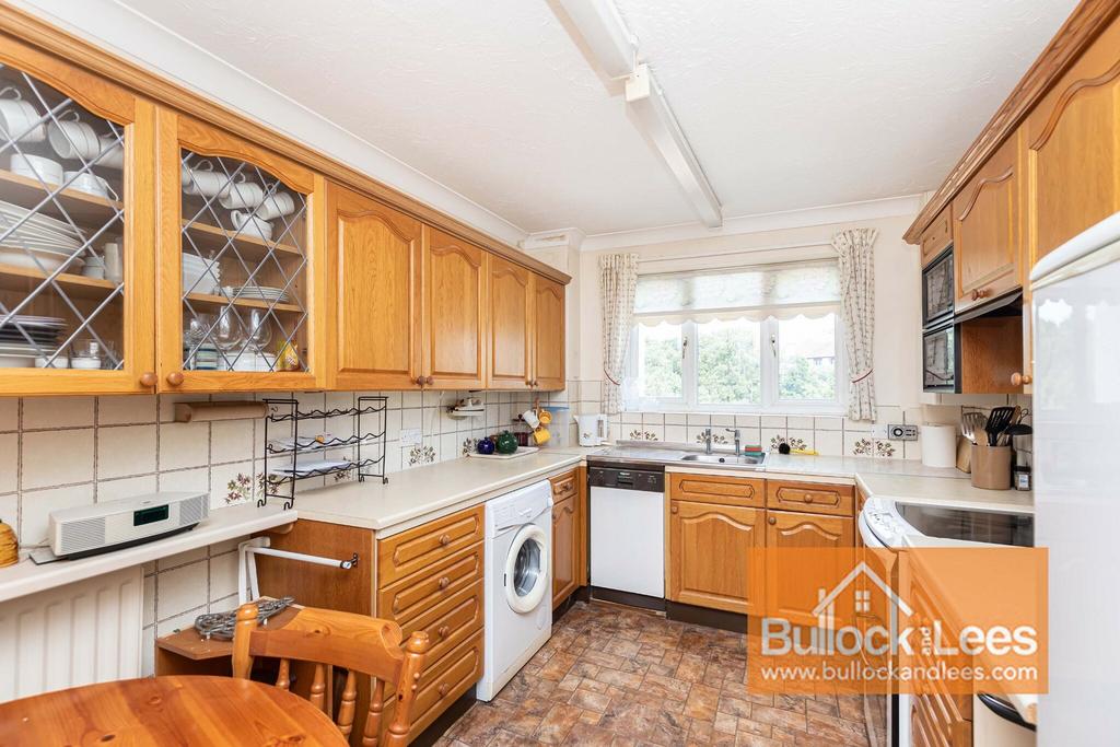 This faces to the rear overlooking the communal gardens and whilst dated, has a perfectly serviceable range of Oak fronted wall and base units with inset sink, washing machine, dishwasher, fridge freezer and electric cooker (none tested). There is even space for a breakfast table too.
