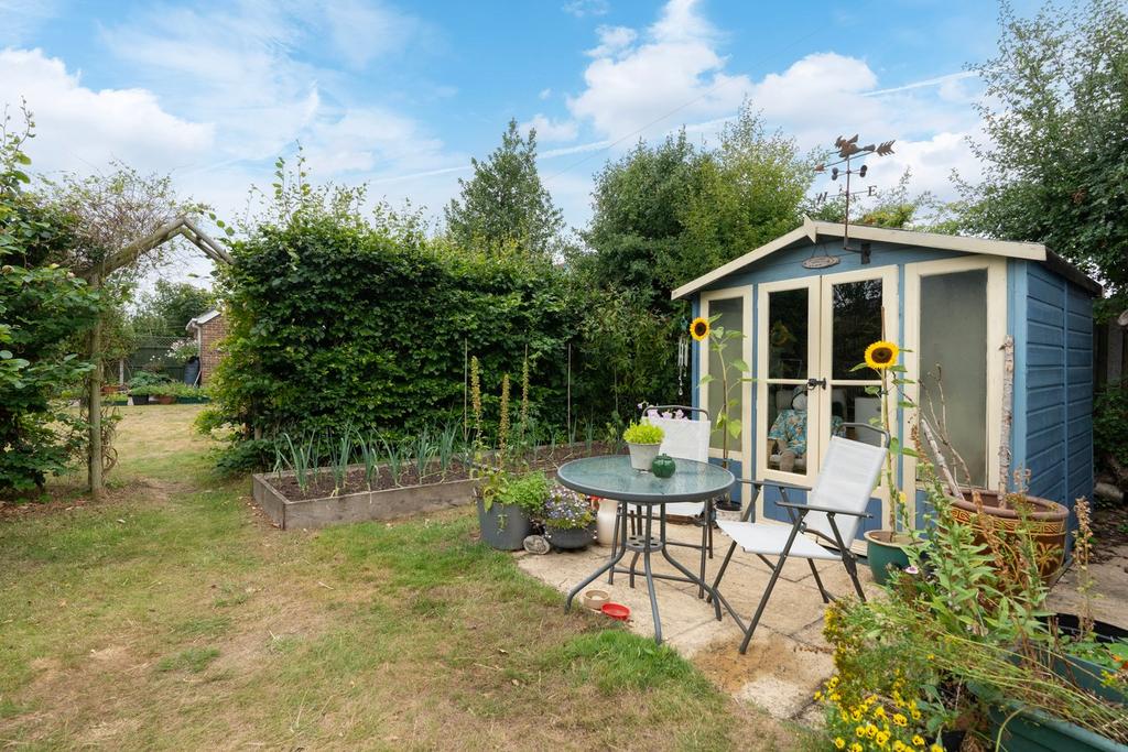 Being accessed via a gate from the driveway and comprising a large gravelled border with feature circular paved area leading to a larger section of lawn with Indian Sandstone paved patio seating area. There is a sunken pond and an archway with Beech hedge screening leading to a further section of garden which is again laid predominantly to lawn and interspersed with fruit trees. This area is served by raised beds, a timber summerhouse and 6ft x 8ft glasshouse. This section of garden also houses the oil tank. There is a further section of garden with raised beds and borders ideal for growing vegetables, a timber garden shed and further 6ft x 8ft glasshouse. The gardens are fully enclosed by a mixture of fencing and served by outside tap, power and lighting.