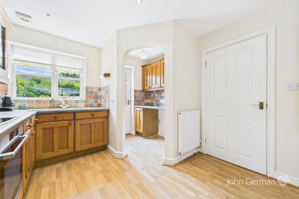 The fitted kitchen provides space for a breakfast table and chairs, with a range of base and eye level units with worksurfaces, an inset sink unit set below the rear facing window, fitted electric hob with an extractor over and electric oven under, integrated dishwasher and the free standing oil fired central heating boiler. An arch leads to the utility which has a fitted worksurface and units to one side, an inset sink unit, plumbing for a washing machine and additional appliances, plus a part glazed door giving direct access to the garden.