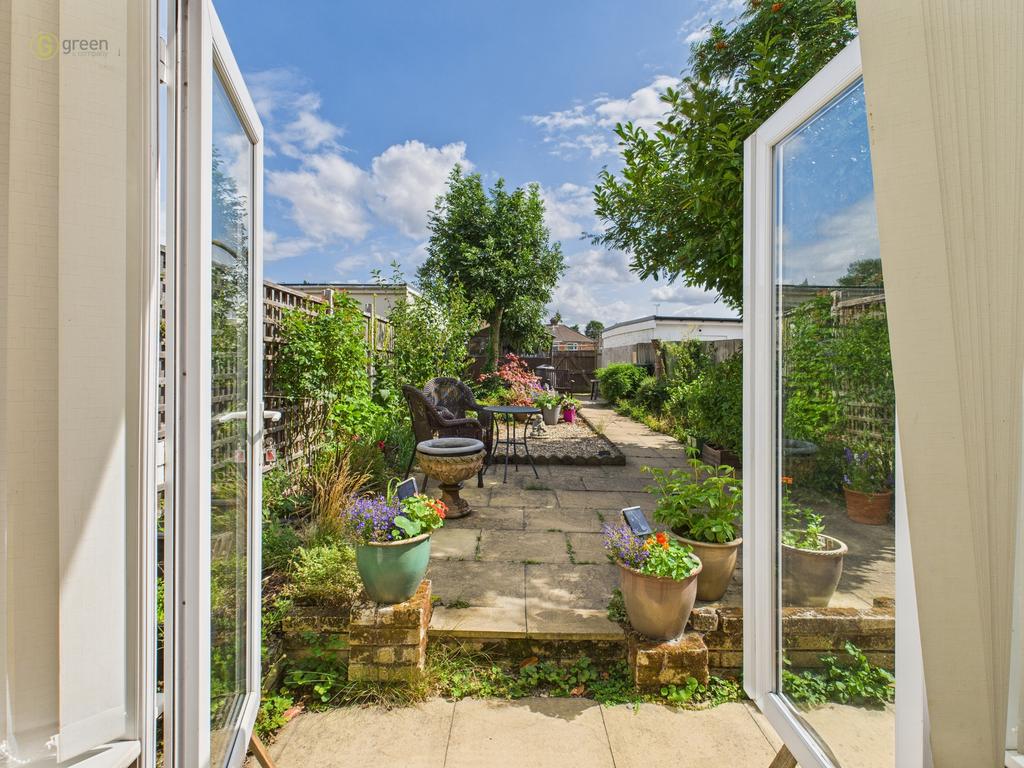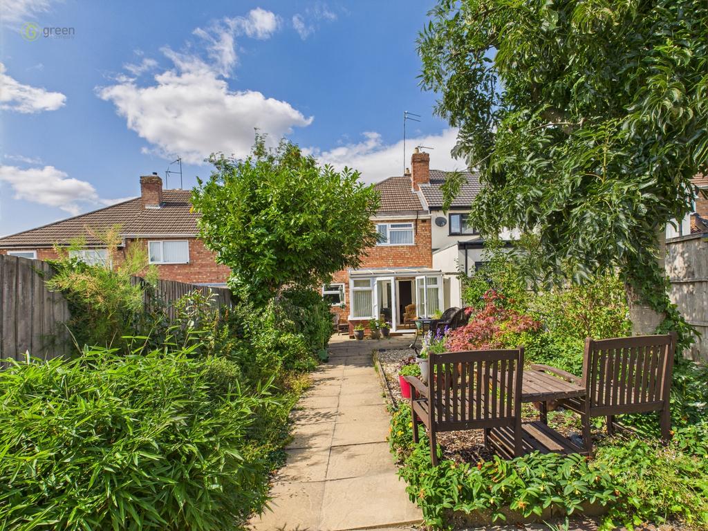 Having shrub and plant borders, paved patio area with path to rear gated access to parking, cold water tap to the rear, side gated access and fenced boundaries.
