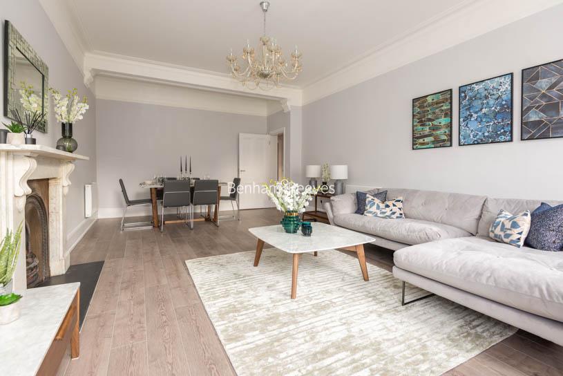 A large and spacious apartment in Southwell Gardens, a large period stucco-fronted Victorian building, located on a quiet street in South Kensington, adjacent to Gloucester Road tube station.