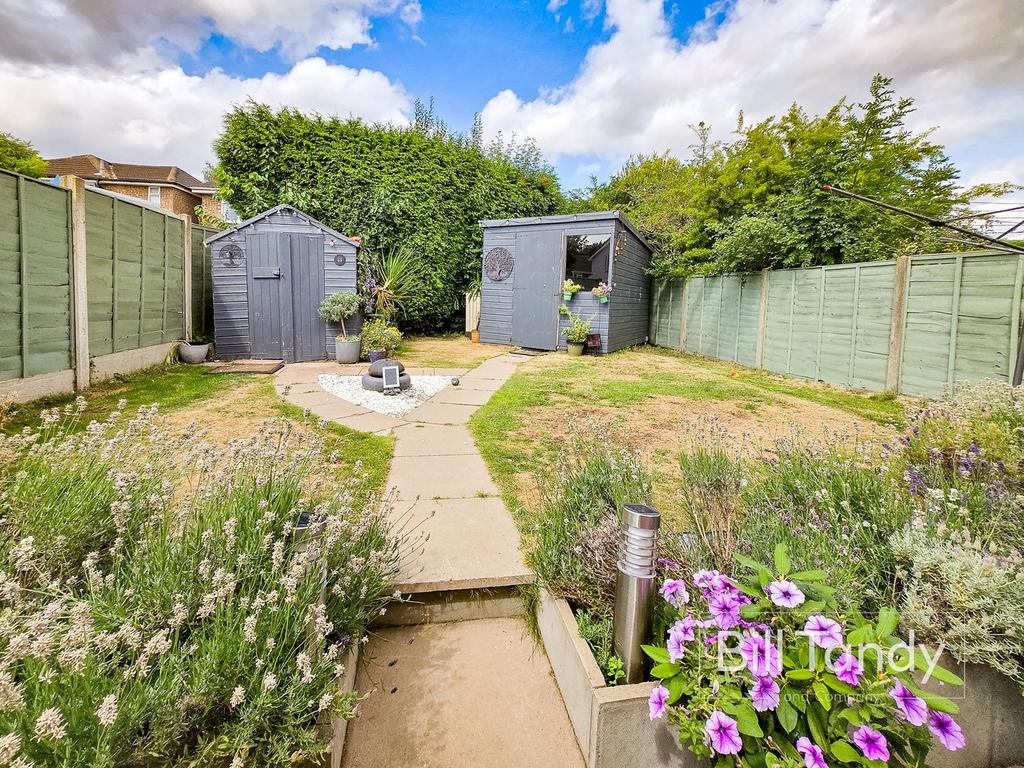 The property has a generously sized tarmac driveway providing parking for numerous vehicles and there is a side gated access leading to the rear. To the rear of the property is a generous paved patio, shaped lawn, flower bed borders, two useful storage sheds, conifers for screening and fenced surround.