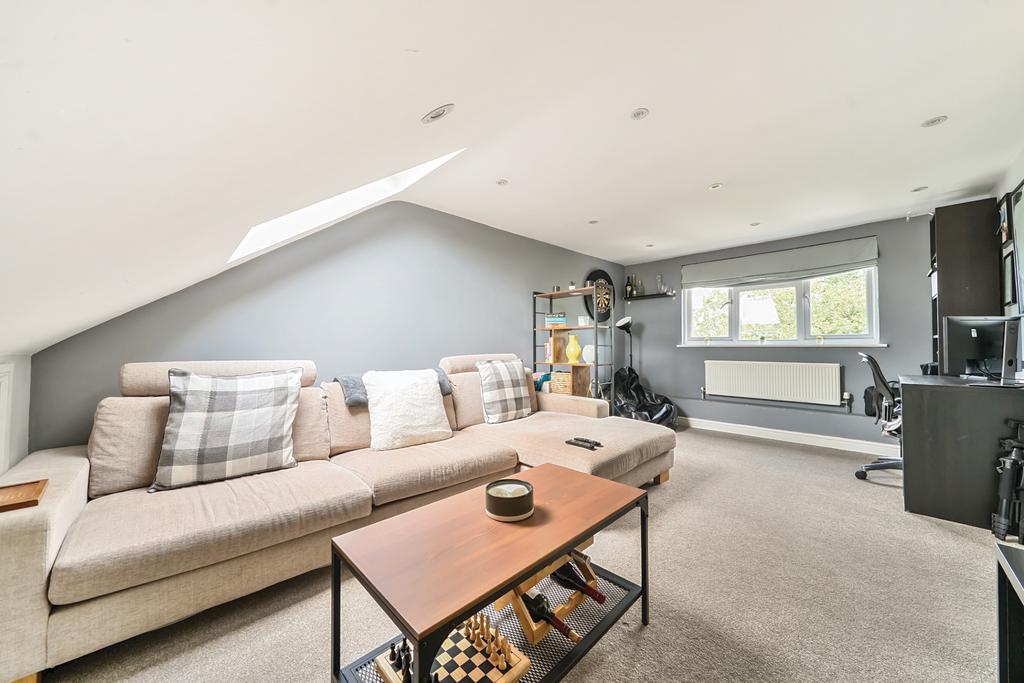The ground floor features a choice of three reception rooms, including a welcoming living room with bi-folding doors that open directly onto the rear garden, a spacious dining room centred around a striking fireplace, and a fully equipped home office/study. The heart of the home is a beautifully appointed kitchen/breakfast room flowing seamlessly into a bespoke double-glazed conservatory-perfect for relaxed entertaining and day-to-day family life. A separate utility room and a cloakroom add further practicality. Upstairs, the first floor comprises four generously sized double bedrooms, including an impressive principal suite, all served by a stylish and well-appointed family bathroom. The top floor offers two additional double bedrooms (one with an en-suite shower room), ideal for guests, teenagers, or use as further office or hobby space, ensuring flexibility to suit a range of modern lifestyles.