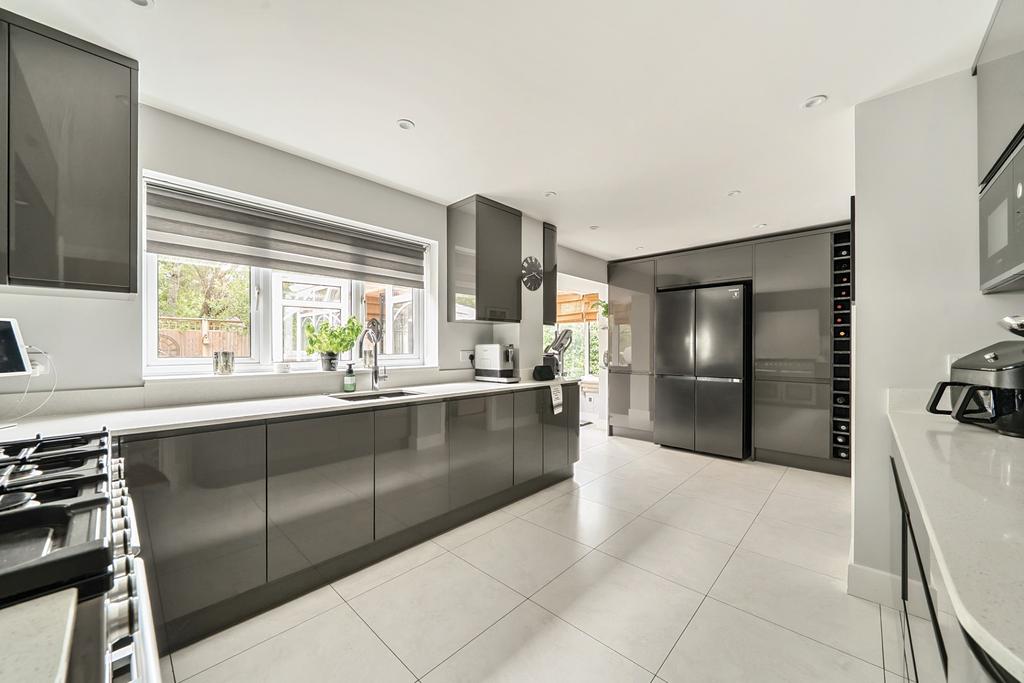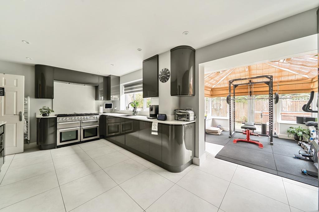 This superbly presented six-bedroom, three-bathroom detached executive residence occupies a prime position in a highly sought-after and tranquil cul-de-sac, ideally located within easy reach of Knaphill Village and well-regarded local schools. Combining generous proportions with elegant design, the home offers versatile family living in a peaceful residential setting.