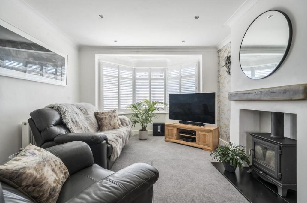 The home welcomes you with an attractive frontage, leading into a light-filled hallway that flows through to the main living spaces. The spacious reception room features a gorgeous log burner and a feature bay window, creating a cosy yet stylish space to relax. Double doors open into the dining room, ideal for family meals and entertaining. We then lead on to the open plan kitchen/family area with a conservatory offering a bright and relaxing area overlooking the garden, while the stylish kitchen/breakfast room boasts a modern shaker-style design, a central island, an extensive range of wall and base units, and generous storage. A full complement of integrated appliances includes a dishwasher, fridge, oven, and hob. The ground floor is completed by a downstairs cloakroom and an upgraded central heating system for comfort and efficiency.