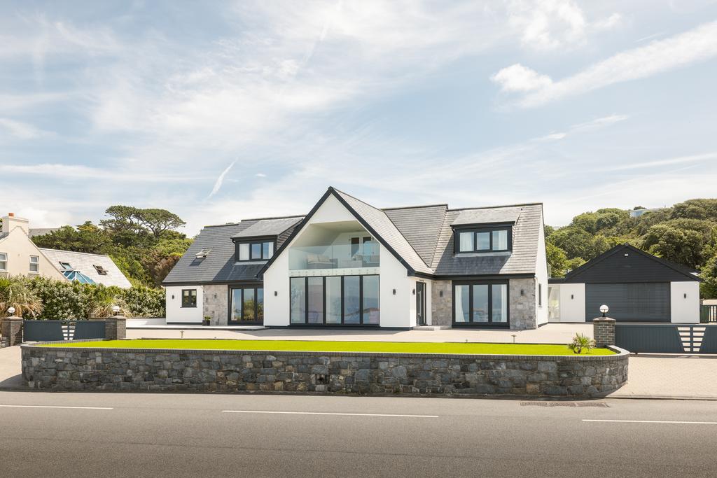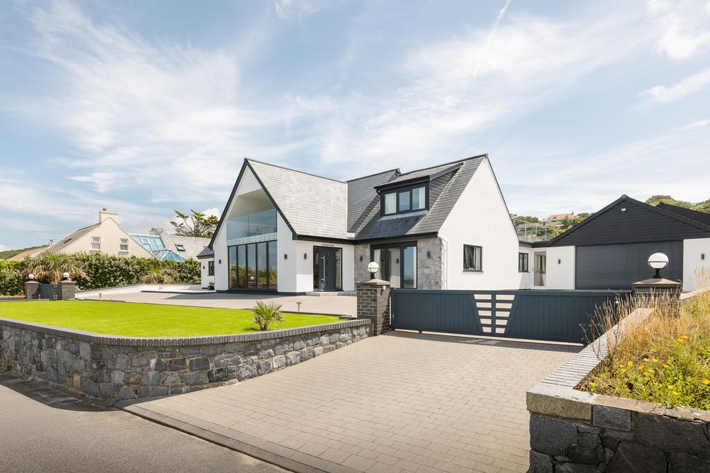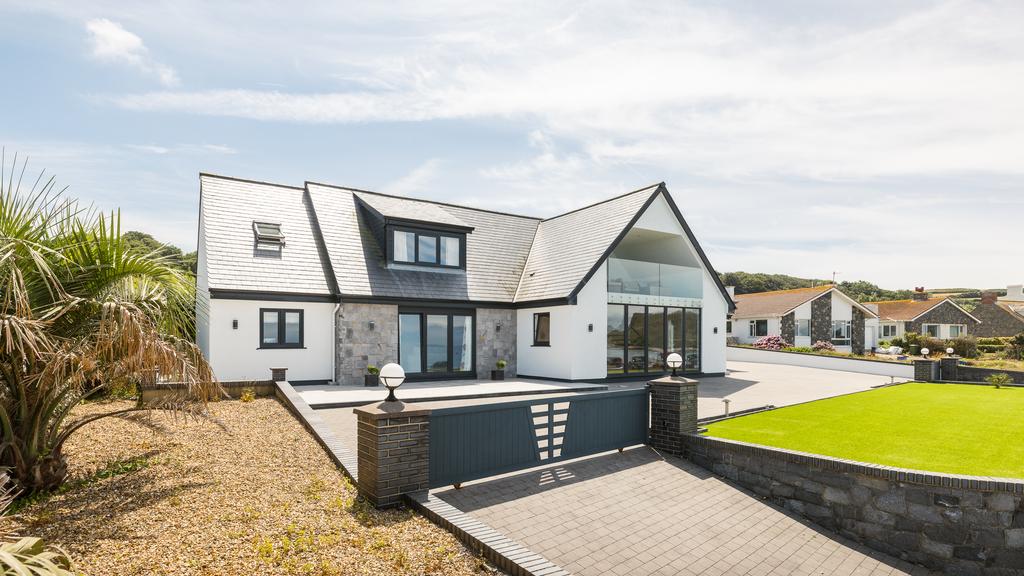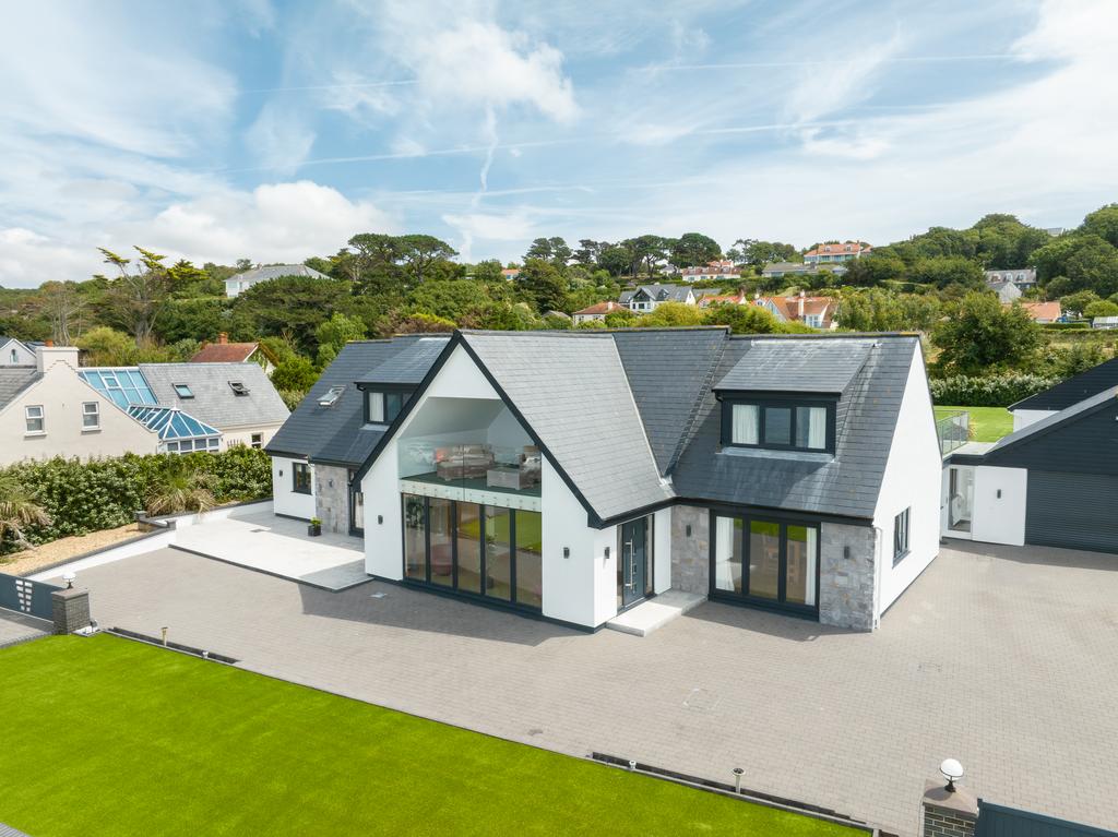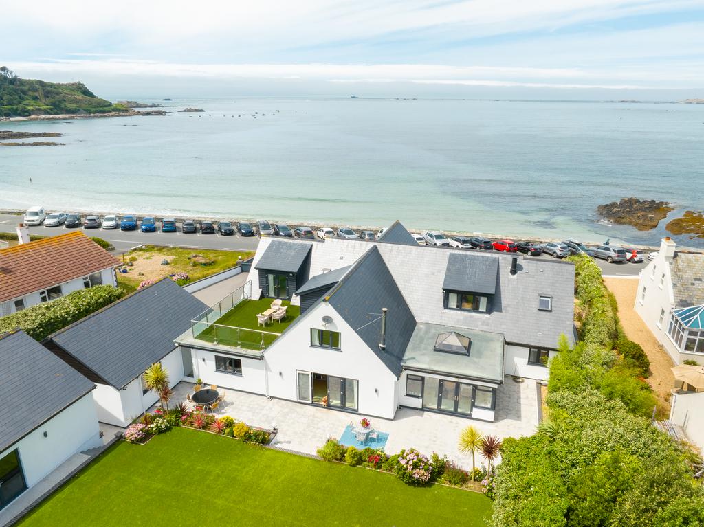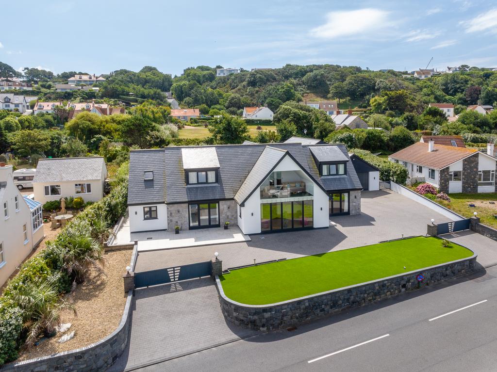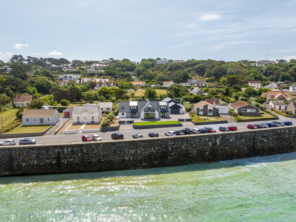 Commanding a prime position directly on the beachfront overlooking Rocquaine Bay, this exquisite family home offers an unparalleled coastal living experience. Constructed in recent years with a focus on generous living, the property boasts expansive, light-filled interiors thoughtfully designed to maximize the breath-taking ocean views.
