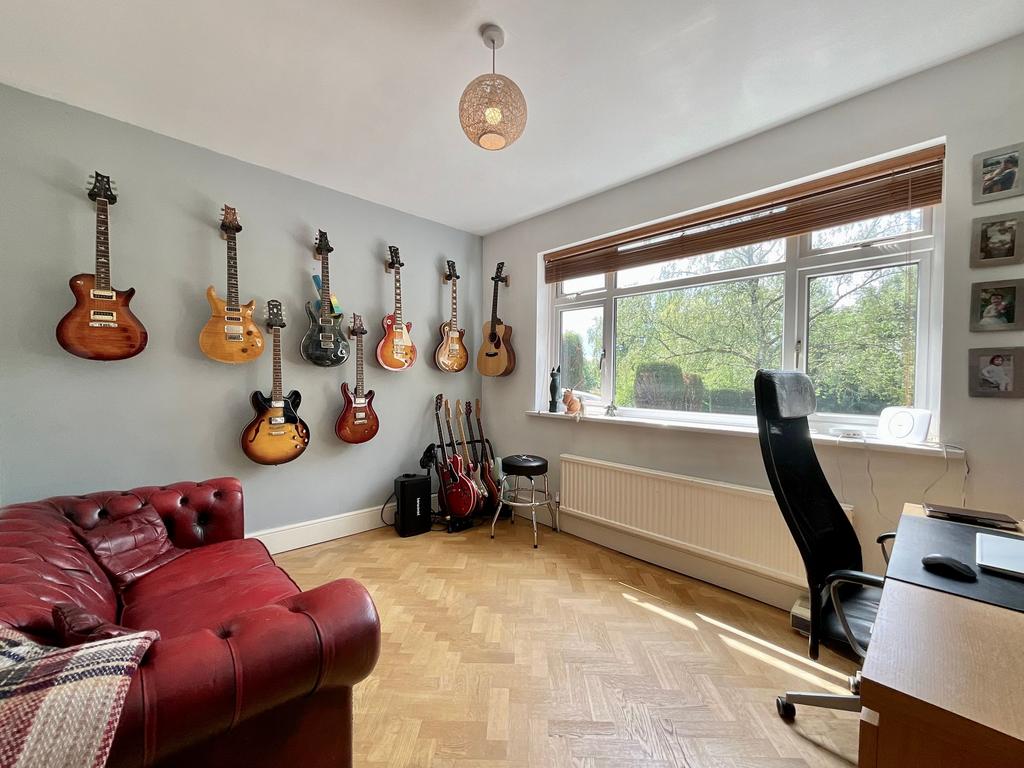 The Willows…hidden in plain sight! You wouldn’t know it was here. Not unless you were really looking. Tucked far from the road, behind a veil of mature trees and reached via a long, winding drive, The Willows is one of those rare homes that feels like a secret…quiet, private, and beautifully kept. Set on a generous 0.36-acre plot, this substantial four-bedroom home shares its discreet setting with just two others, creating a peaceful little pocket in the heart of May Bank, moments from the local bustle, yet wrapped in calm. Pull in and pause. The first thing you’ll notice is the space: an impressive frontage of manicured lawn, dotted with trees and flanked by flowerbeds. Step inside and the entrance hall is a moment in itself. Light streams down from the galleried landing above, and there’s a real sense of openness, it’s a welcome that sets the tone for the rest of the house. To your left, the main living room stretches out towards the front, with sliding French doors that open onto a raised terrace, a perfect spot to soak up the dappled morning sun and listen to the trees rustle. Continue through to the dining room, which connects both to the rear garden and the heart of the home, the kitchen-breakfast room. Here you’ll find ample worktop space, masses of cupboards, and room for the whole family to gather. A utility room sits just off to the side, keeping the everyday neatly tucked away. There’s also a third reception room on the ground floor, a cosy, quiet space currently used as an office/snug and a generously sized guest cloakroom for visiting friends and family. Upstairs, four genuine double bedrooms unfold from the bright and open gallery landing. The master bedroom sits to the front, basking in the same leafy views as the living room below. It’s paired with its own dressing area and a stylish en suite with bath and overhead shower. The remaining bedrooms are all comfortably proportioned and served by a large family bathroom, complete with both a bath and a separate walk-in shower. Outside, the South/West facing rear garden has been designed with ease in mind: part-lawned (with a section of artificial turf for low-maintenance living), with patio areas for seating and spots of sun or shade at all hours of the day. The double garage offers practical storage or potential for a gym, workshop or even conversion, subject to planning. And the location? It’s hard to beat. Hidden away off Sandy Lane, you're still just a short stroll from the charm of May Bank’s pubs, cafes and restaurants. The Brampton Museum and New Vic Theatre are close by, with Newcastle-under-Lyme just a five-minute drive away. For commuters, the A500, M6 and A34 are within easy reach, and Stoke station is a short drive too.