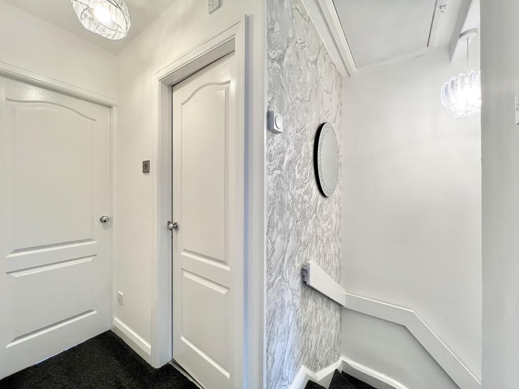 UPVC double glazed door to the front aspect, radiator, meter cupboard and stairs leading to the first floor.