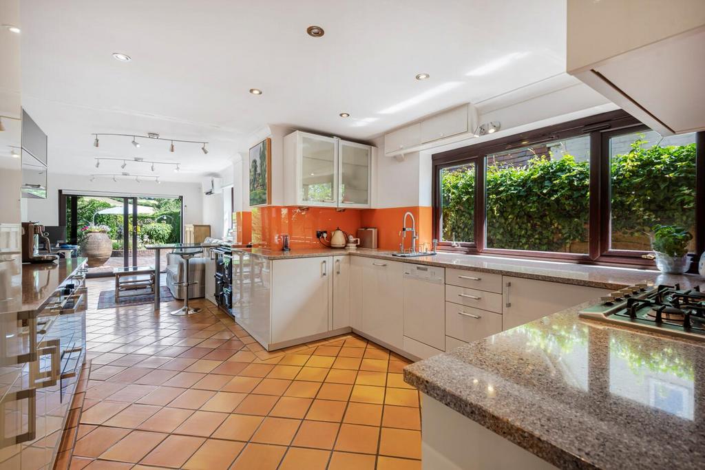 Upon entering, a hallway leads to the reception/dining room, which features a wooden floor and an attractive fireplace with a gas fire. French doors open into a spacious, light-filled conservatory, home to an impressive fig tree. The spacious kitchen/dining room features an oil-fired Raeburn, a comprehensive range of wall and base units with granite worktops, a Miele oven, five-ring gas hob, and integrated fridge freezer. Additional ground floor accommodation includes a utility room, wine room, cellar, gym/studio, a contemporary shower room/cloakroom, and a separate reception room which could also serve as a fifth bedroom.