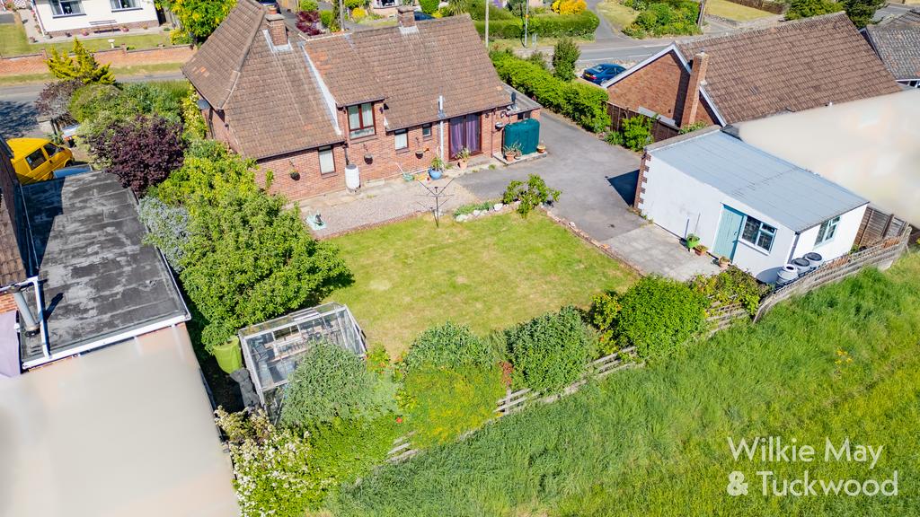 The property sits on a good sized plot with the gardens wrapping around the property. The front garden has a lawn and hedge borders with a path to the front door. The rear garden, which has side access, is mainly lawn with some gravel and borders. There is a driveway for multiple cars to the side and rear of the property and a large single garage with power, light and a side door.