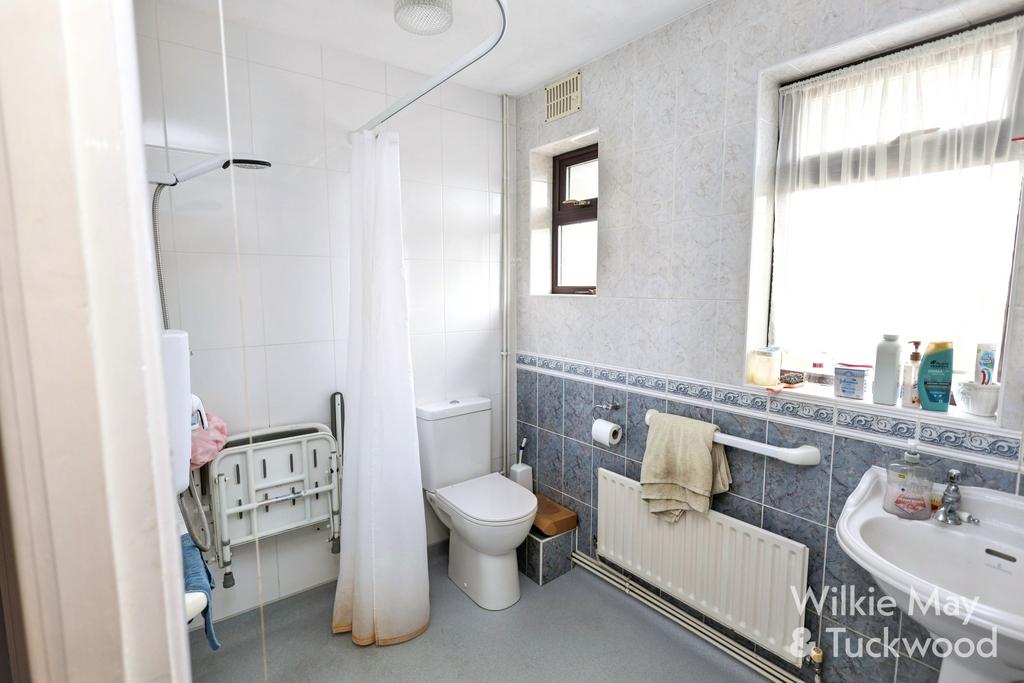 A wet room comprising shower with seat, a toilet, basin and dual windows. The principal bedroom is a good size double bedroom with dual aspect windows. The second bedroom is another well-proportioned double bedroom with patio doors leading onto the rear garden.