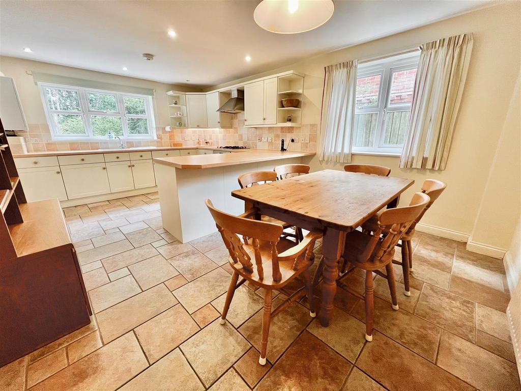 Kitchen/Dining Room - 5.65m x 3.60m (18'6" x 11'9") - Another generous space with ample room for a dining table and fitted out with a good range of cupboards drawers and work surfaces incorporating a breakfast bar. There is an integrated dishwasher as well as an electric oven with gas hob and cooker hood over. Undercounter space is also provided for a fridge and freezer.