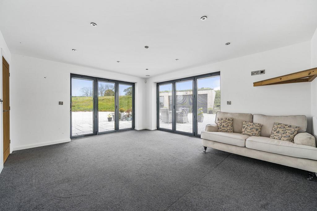 The accommodation also has the benefit of an internal ventilation system and in brief comprises: Spacious main reception hall with a shower room/wc. 16’2 × 13’6 living room with wooden laminate floors and bi-fold doors to two elevations connecting the room to the wrap-around terrace, 28’1” orangery with lantern roof light and bi-folding doors to the terrace and breakfast kitchen with integrated appliances and bi-folding doors to the front flagged terraces. Separate utility room. Spacious first floor landing, 4 bedrooms, two with Juliet balconies enjoying the fantastic countryside view and house bathroom.