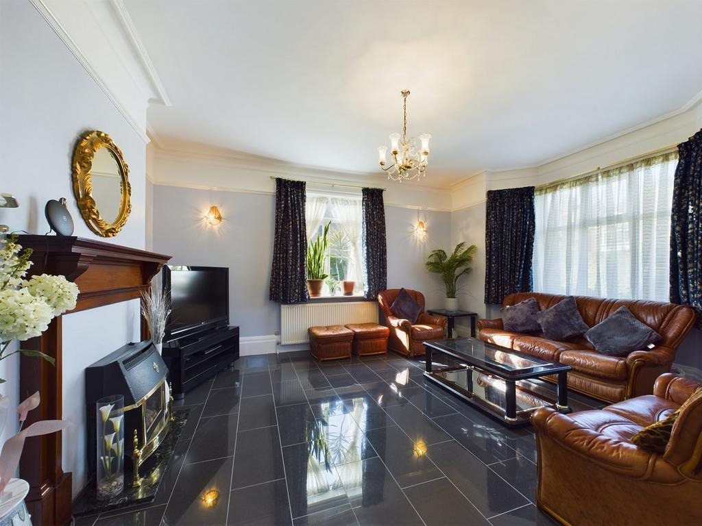 4.83m x 4.21m (15' 10" x 13' 10") This double aspect room features a double glazed bay window to the front of the property, double glazed window to the side which enjoys views over the garden, feature fireplace, media points, high level skirting boards, ornate coving, picture rail, radiator and tiled flooring.