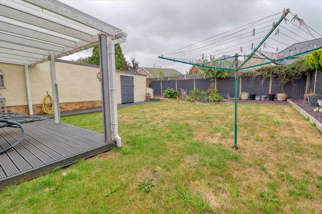 The bungalow itself has a 13'9 lounge with feature cast iron open fireplace, separate dining room overlooking the garden and opening into a 17'6 fitted kitchen having a skylight making it light and airy, three good sized bedrooms and family bathroom. Outside there is ample off street parking to the front with double gates leading to a fully enclosed side area in turn leading to the detached DOUBLE LENGTH GARAGE currently split into two sections. The rear garden is fully enclosed having a covered paved patio with outside power and LED lighting. Owned SOLAR PANELS are also of great benefit.