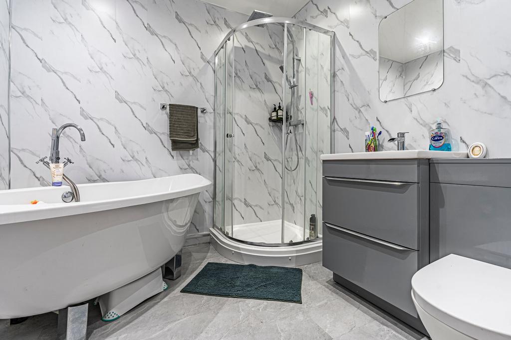 Also located on the ground floor is the modern family bathroom, complete with a separate bath and walk-in shower – a practical and well-finished space, ideal for busy family life.