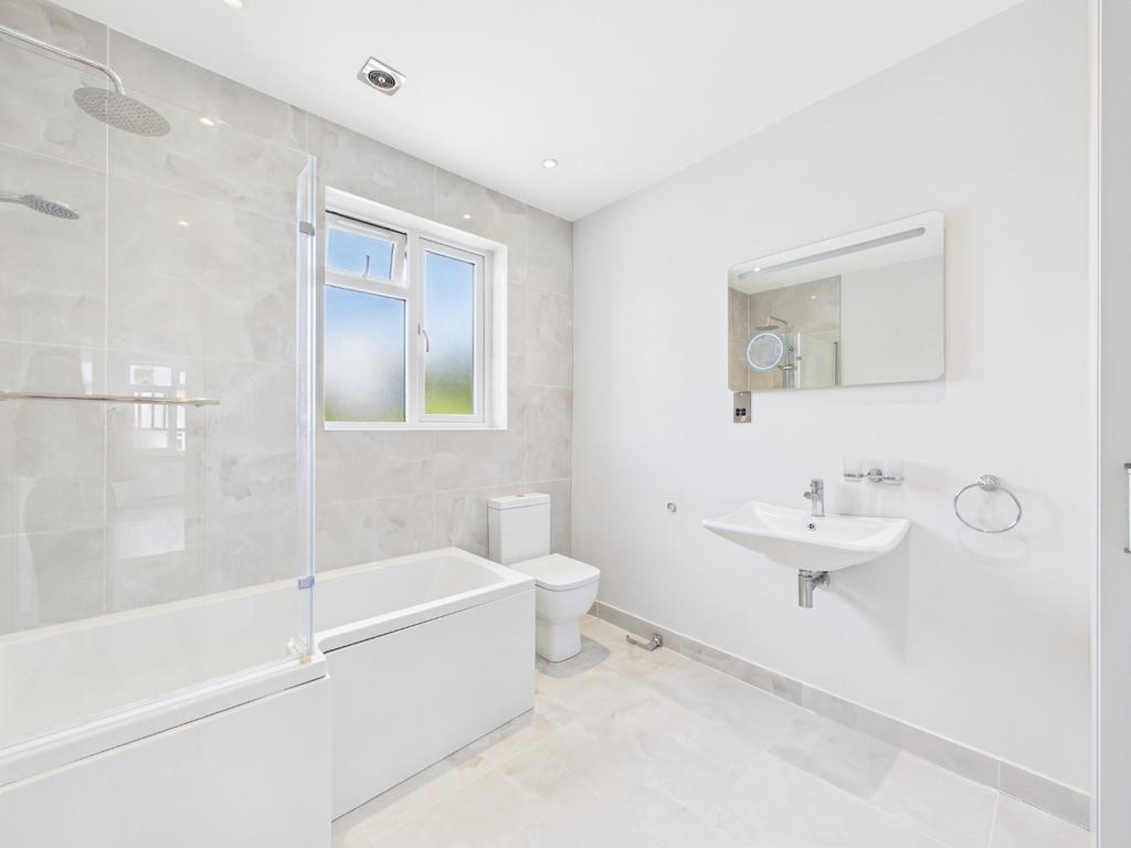 The standout bathroom is impressively spacious and newly finished with sleek, modern fittings. The open-plan living and dining area downstairs is stylish and welcoming, ideal for relaxing or entertaining.