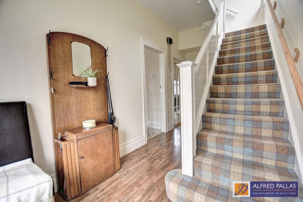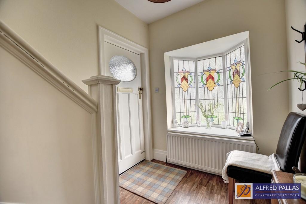 ENTRANCE HALL Attractive stained glass bay window; cloaks cupboard; radiator