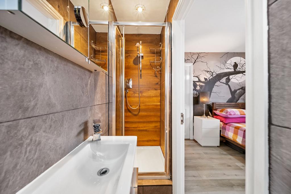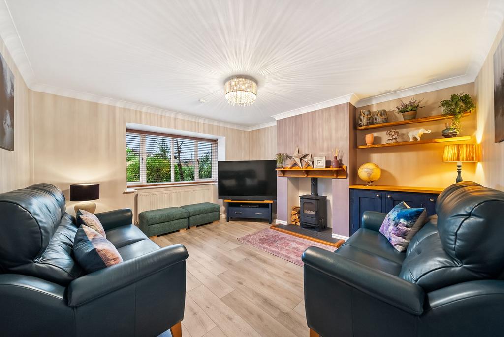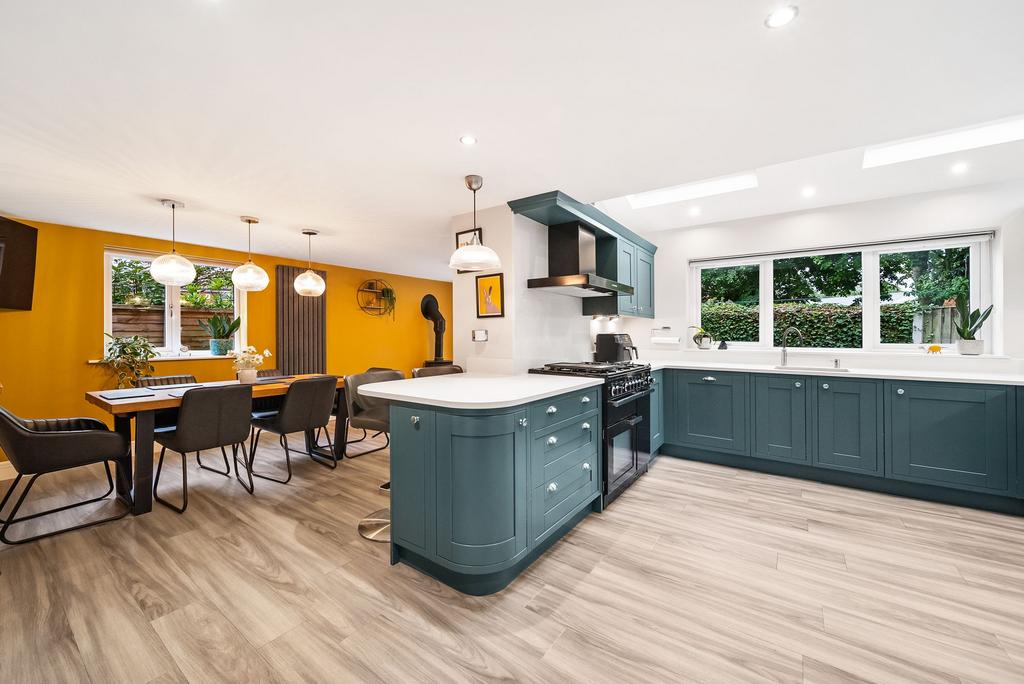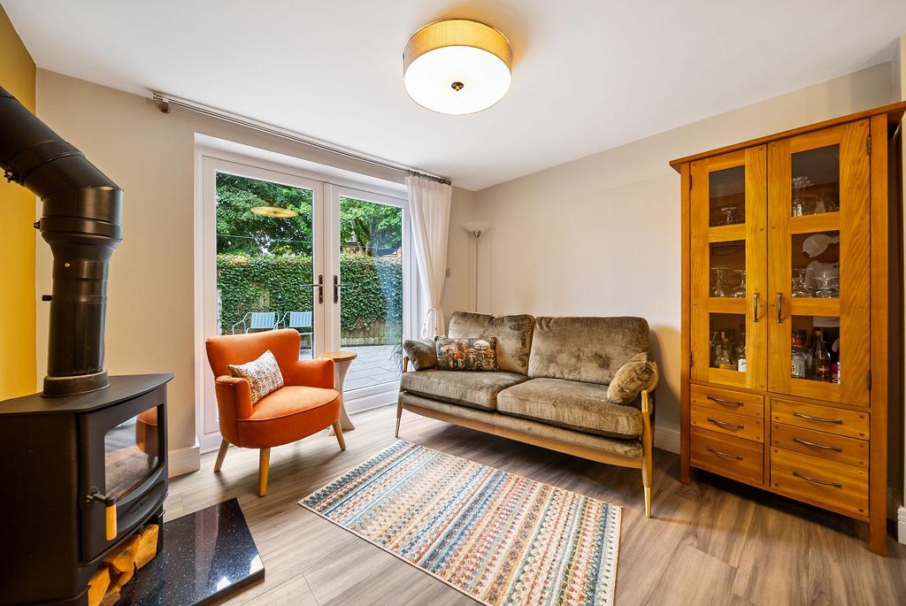 The ground floor features two inviting reception rooms, each boasting a charming log burner, perfect for cosy evenings and adding warmth and character to the space. The open plan kitchen dining room is a true highlight of the home. Equipped with a Quooker boiling tap and a Rangemaster stove, it blends practicality with luxury. Velux windows positioned above the kitchen cabinets flood the space with natural light, creating a bright and airy atmosphere that makes cooking and entertaining a genuine pleasure.