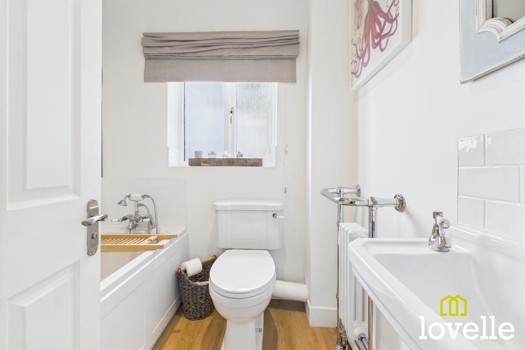Fitted with a three piece suite comprising bath with mixer tap and shower attachment, low flush WC and pedestal wash hand basin. Traditional style chrome towel heater, and uPVC obscure window.