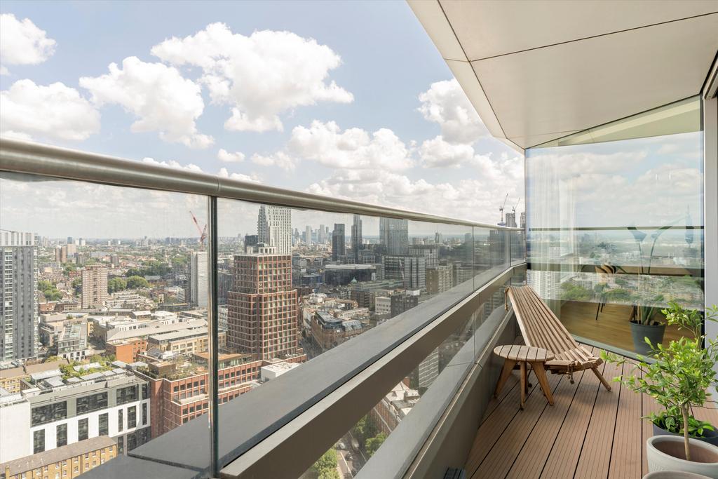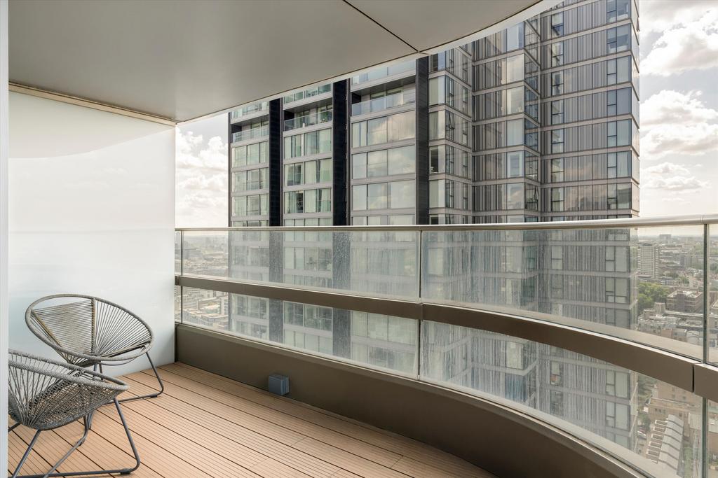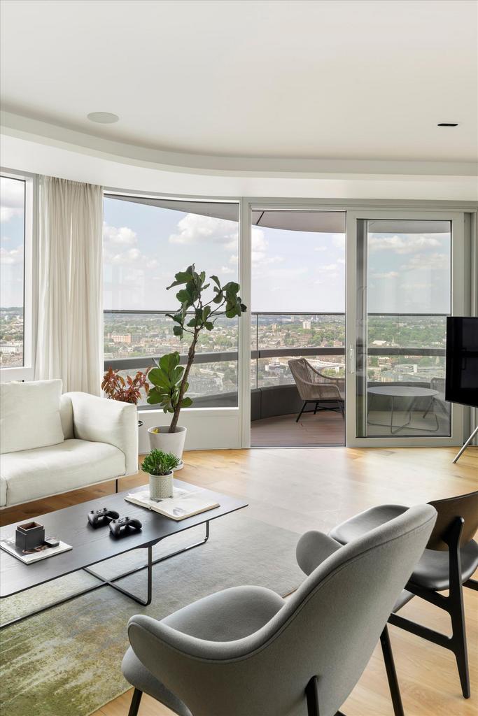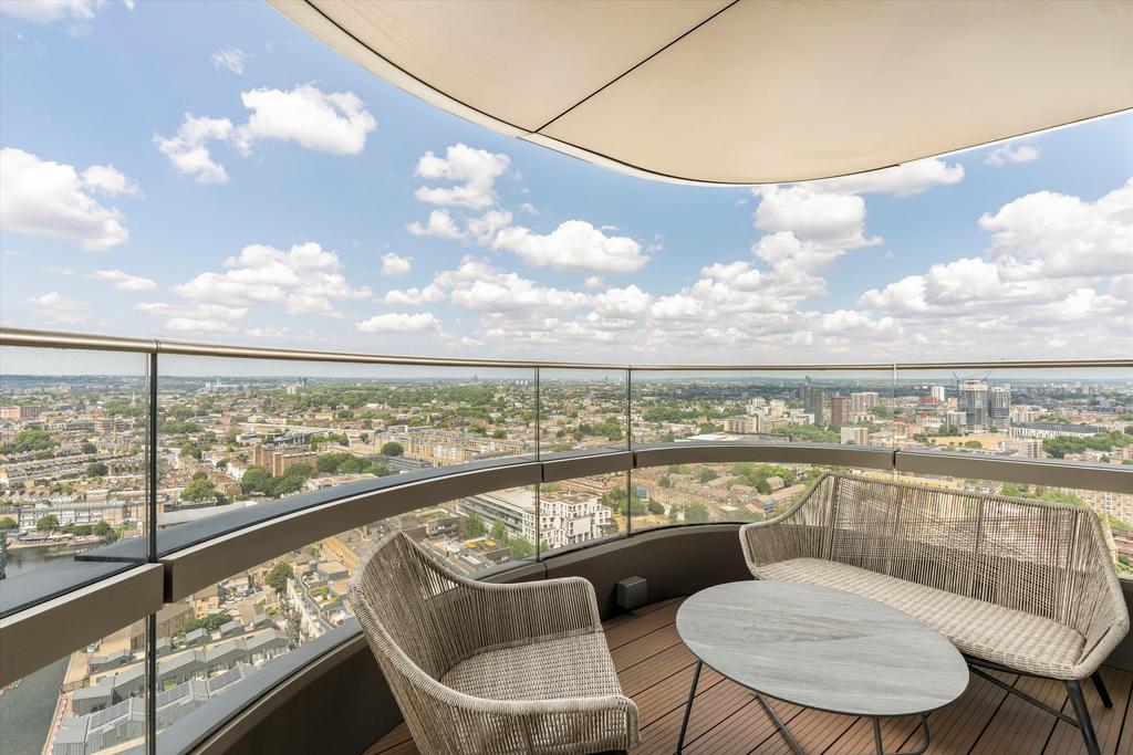 This remarkable sub-penthouse apartment in the iconic Canaletto Tower offers approximately 1,960 sq ft of refined living space, occupying half of an entire floor, complemented by three private terraces—each providing views across the London skyline.