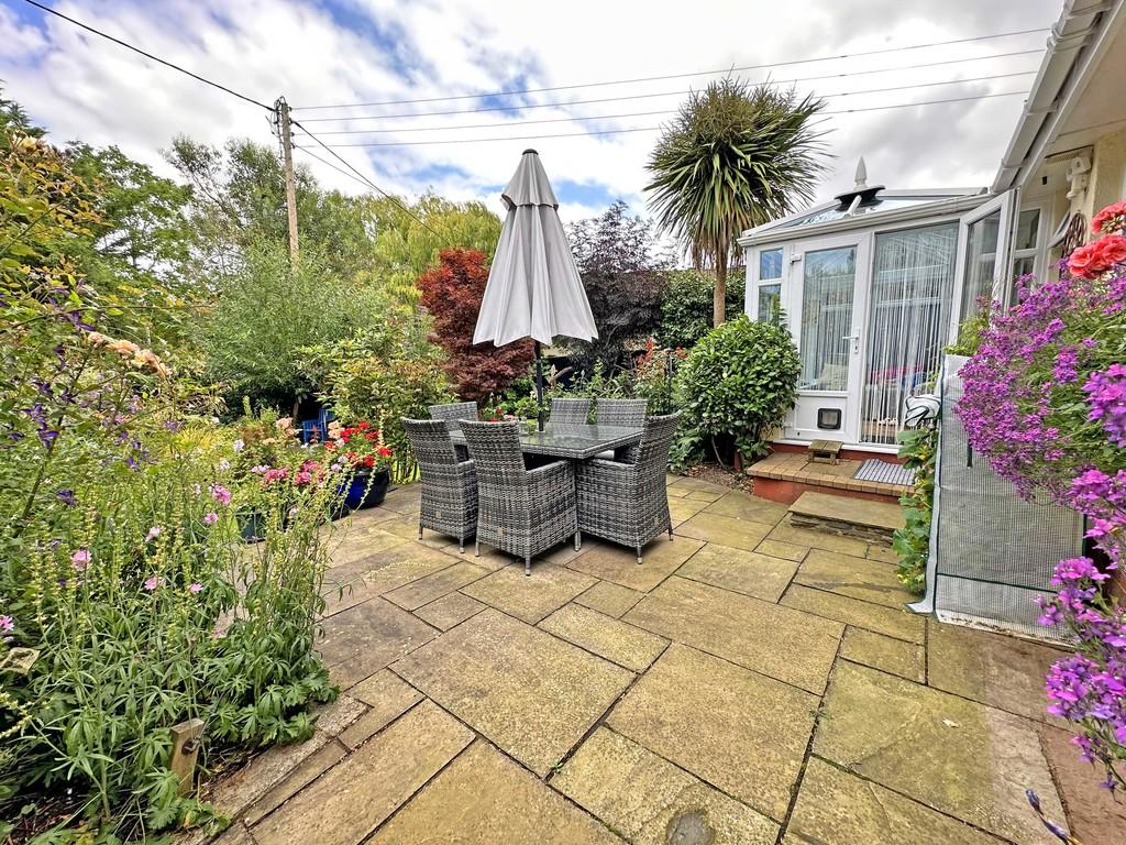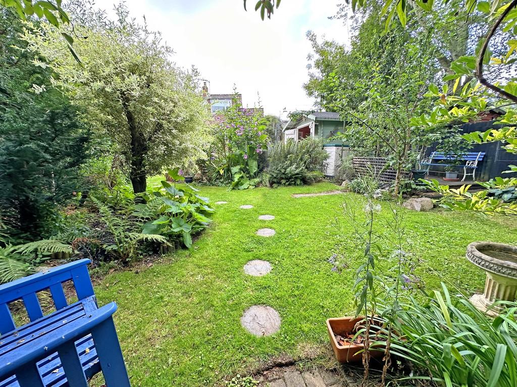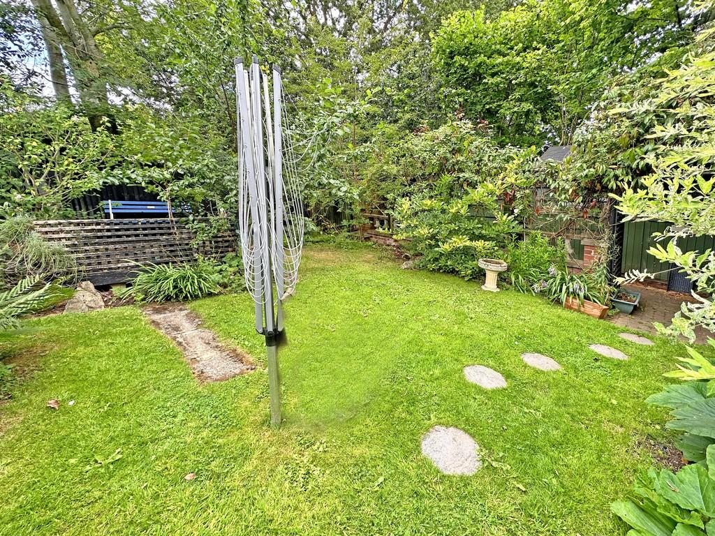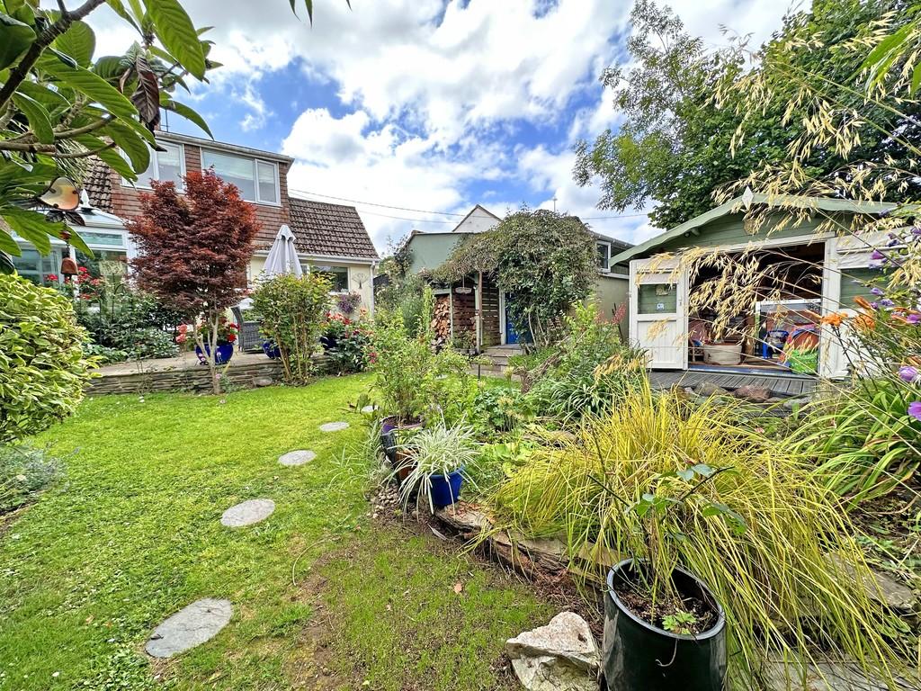 REAR GARDEN Beautifully landscaped rear garden with paved patio adjoining the rear of the property with two steps down to a lawned garden area with wonderful timber summer house overlooking a water feature and a range of beds and borders stocked with an abundance of mature plants and shrubs. Step stone path leads down to a further lawned garden area with a raised timber decked area and an archway leading to a concealed area with two large timber sheds. Also accessed through the garden is a utility room located behind the garage.